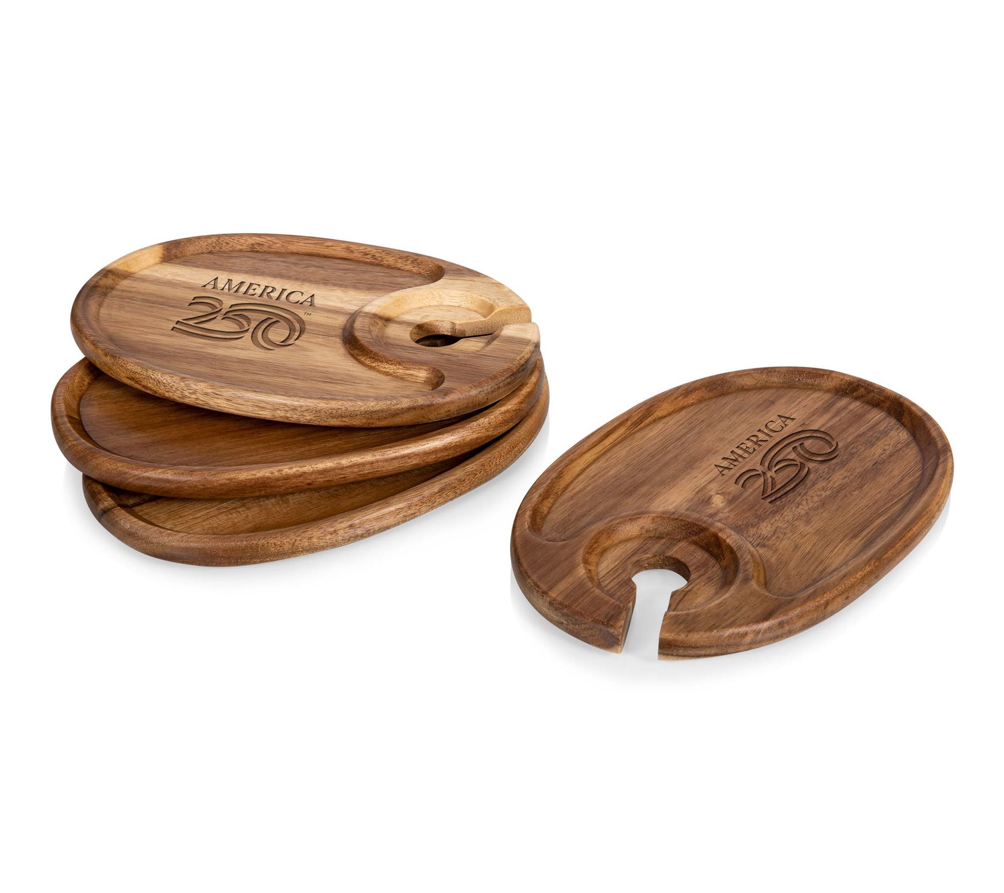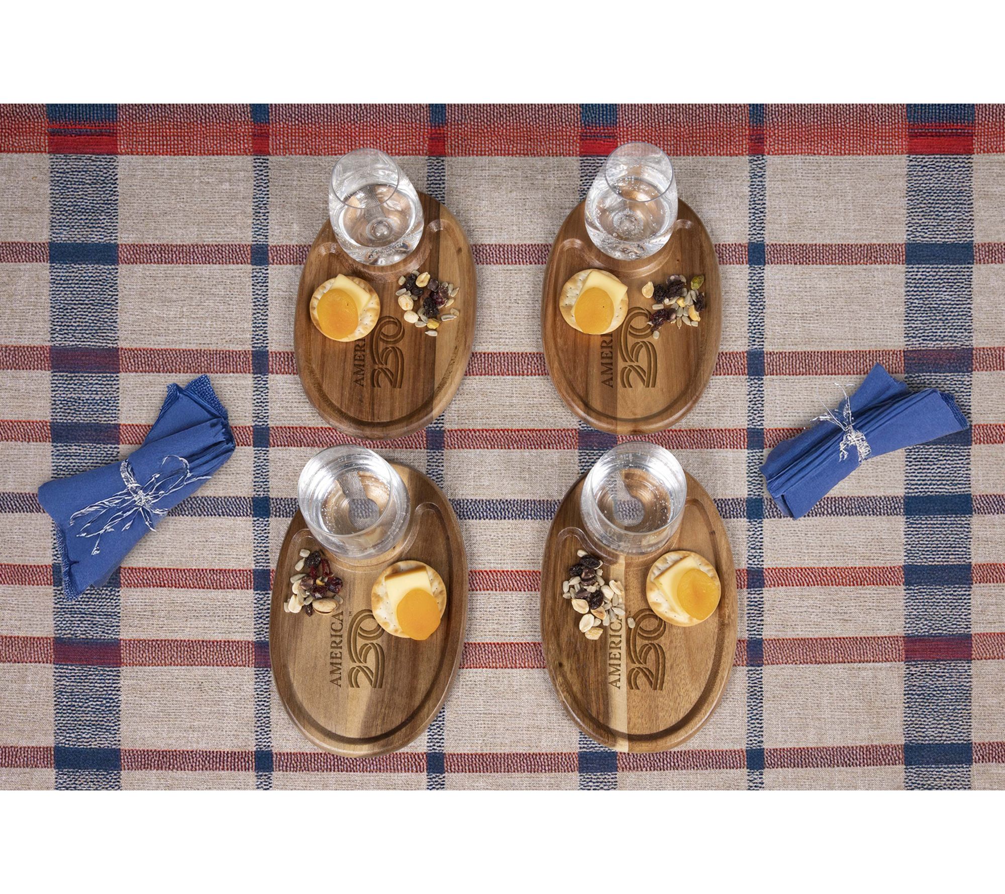 • Includes four acacia appetizer trays