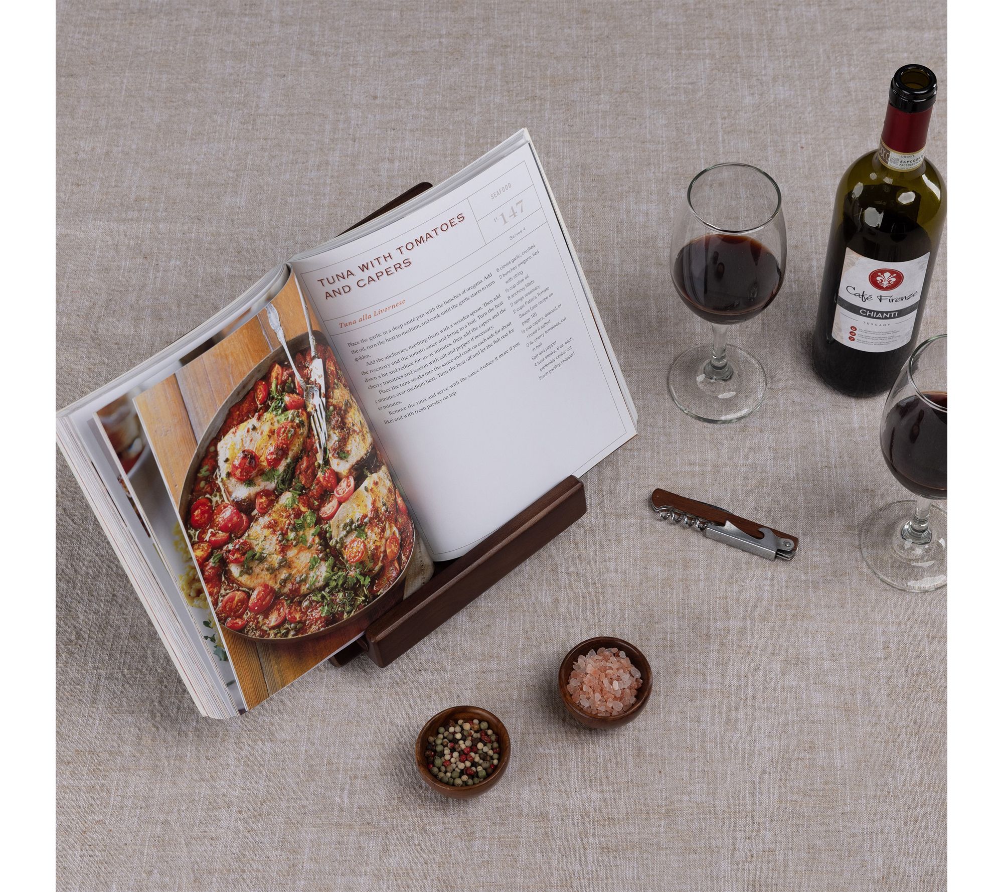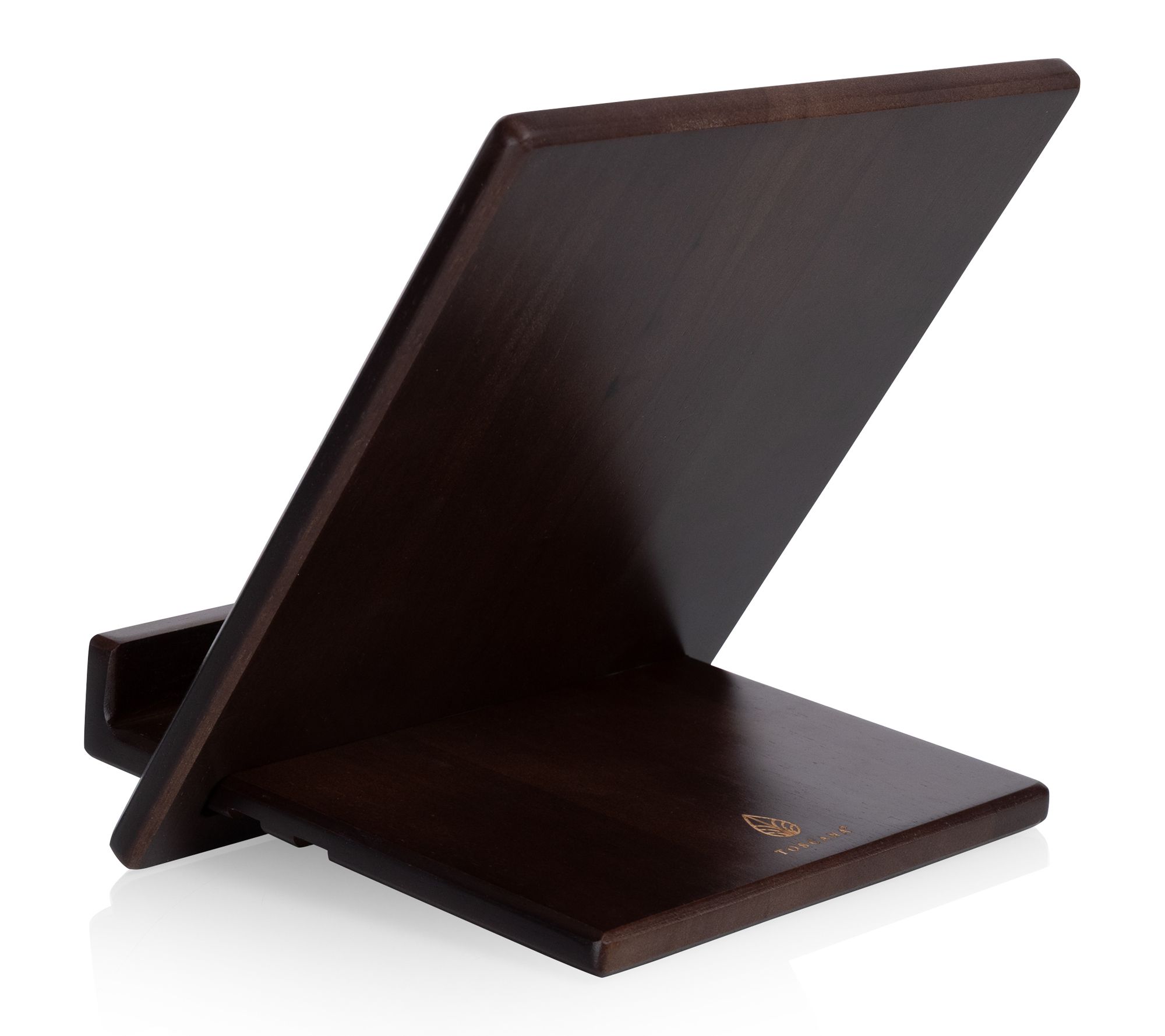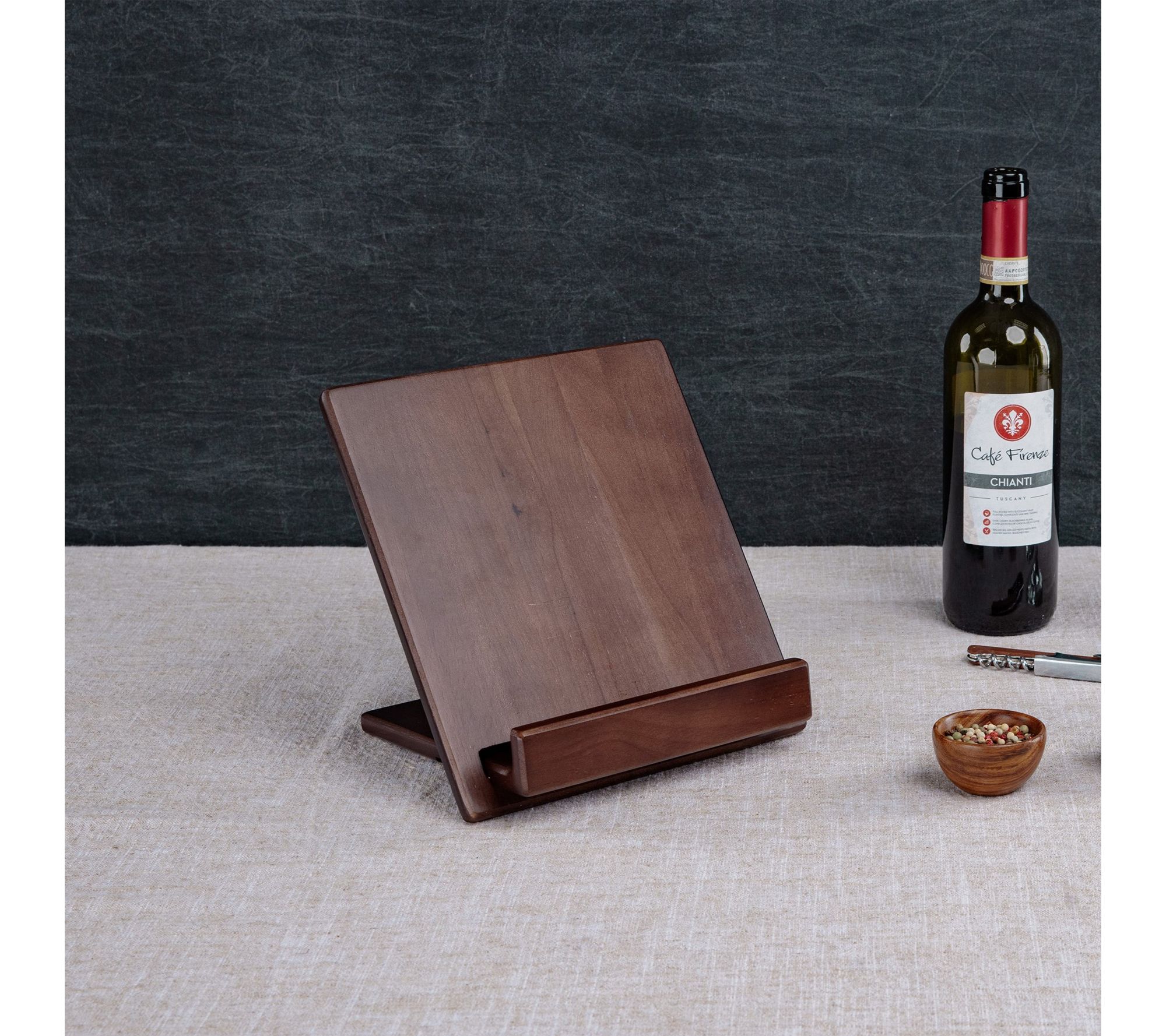 Keep your favorite recipes and digital guides right at your fingertips with this elegant cookbook and tablet stand. Crafted from smooth, stained parawood, it brings a touch of warmth to your kitchen while freeing up your hands for prepping, mixing, and tasting. The adjustable angles and fold-flat design make it easy to use and store, whether you're following a new recipe or catching up on cooking videos. From Toscana.