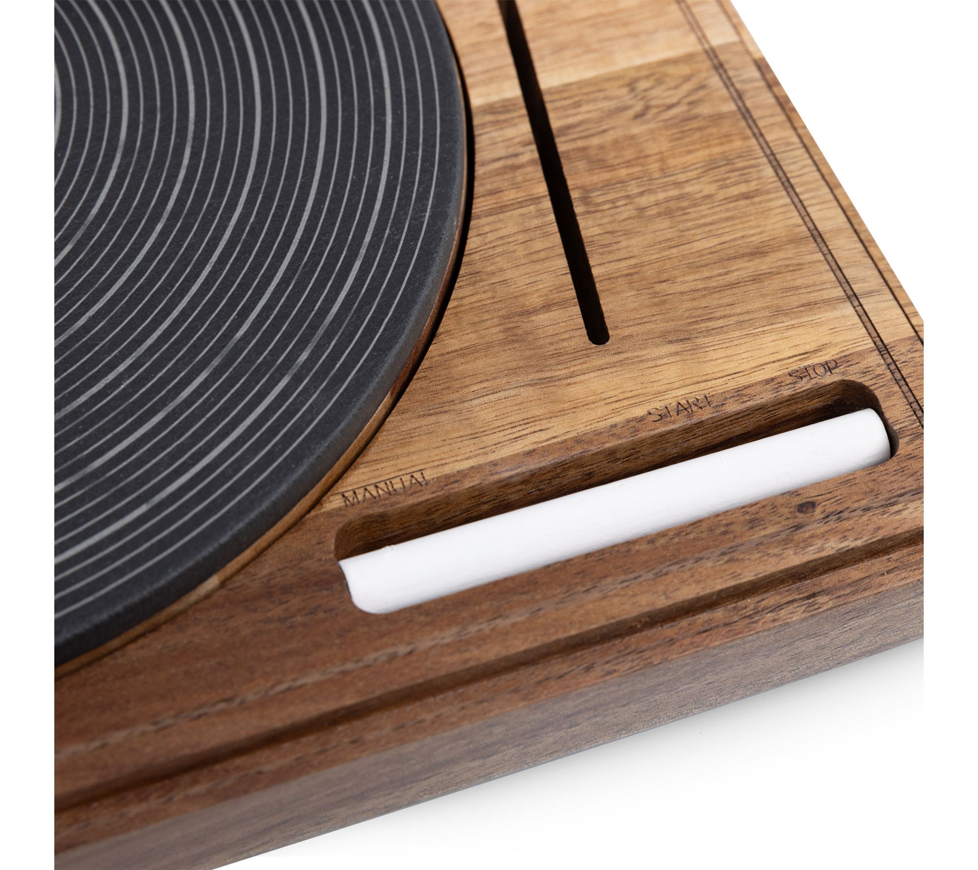 • Acacia wood, slate, stainless steel, and chalk construction