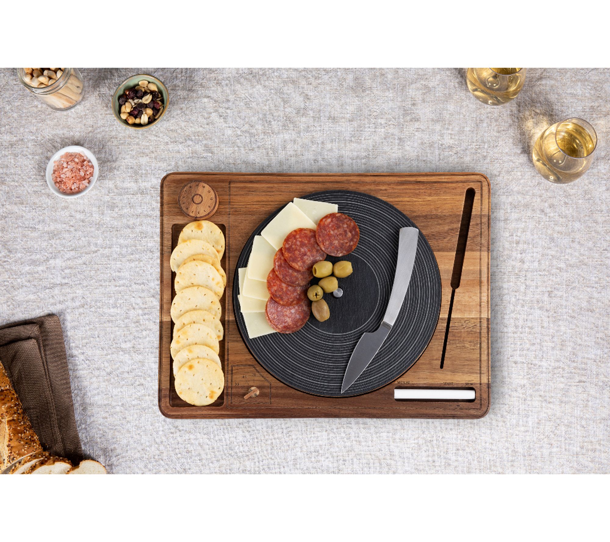 Toscana Turntable Acacia and Slate Cheese Boardwith Knife