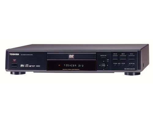 DVD movies are the latest rage. See why they are the fastest selling form of consumer electronics in history with your own DVD player from Toshiba. This single disc player's special features include super ColorStream pro component video output; 10bit/54mhz video deck; 540 line horizontal resolution; digital cinema progressive; black level expansion; custom picture setting; CD/DVD text; 24bit/192KHz digital to analog audio converter; enhanced audio mode/dialogue expander; enhanced menu with virtual remote; spatializer N-2-2 virtual surround; four power digital picture zoom; MP3 file play; front panel operation; and advanced basic remote control. Outputs include ColorStream Component Video; S-Video; composite video; parallel video; Dolby Digital and DTS compatible digital; coaxial digital audio; and one pair analogue audio. Additional features include dynamic range control; parallel A/V outputs; X2 playback; slow motion, forward and reverse; parental lock; time search; icon based on-screen displays; camera angle select; multi-language and multi-subtitle select; and title stop. Black chassis. Measures approximately 3-3/16"H x 17"W x 13-5/16"D. UL Listed. 90-Day LMW. Made in China.