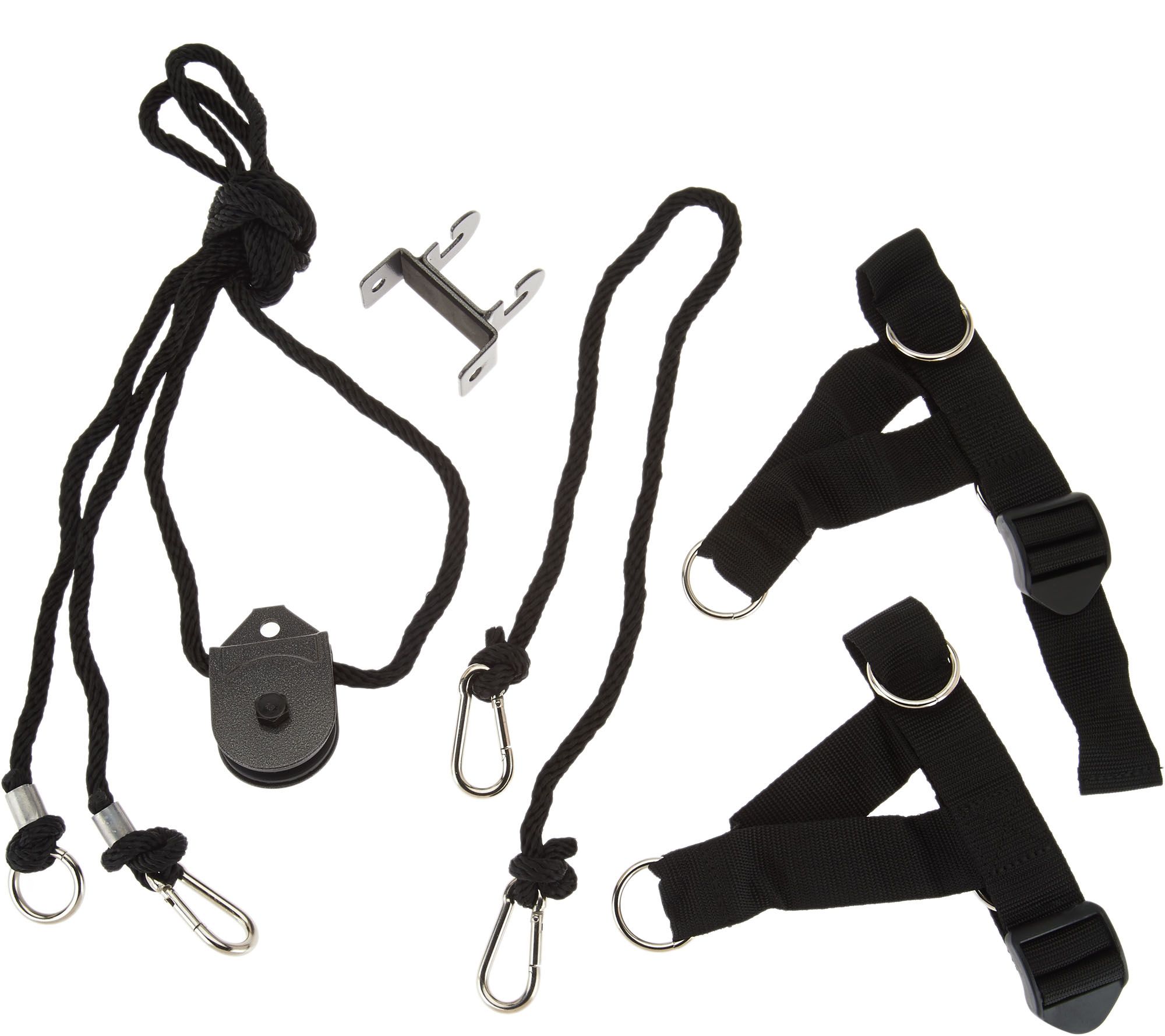 Eight attachments: pilates toe bar, two-piece wing attachment, two-piece AbCrunch, step, deluxe pulley system with two ankle cuffs, pilates extension tope