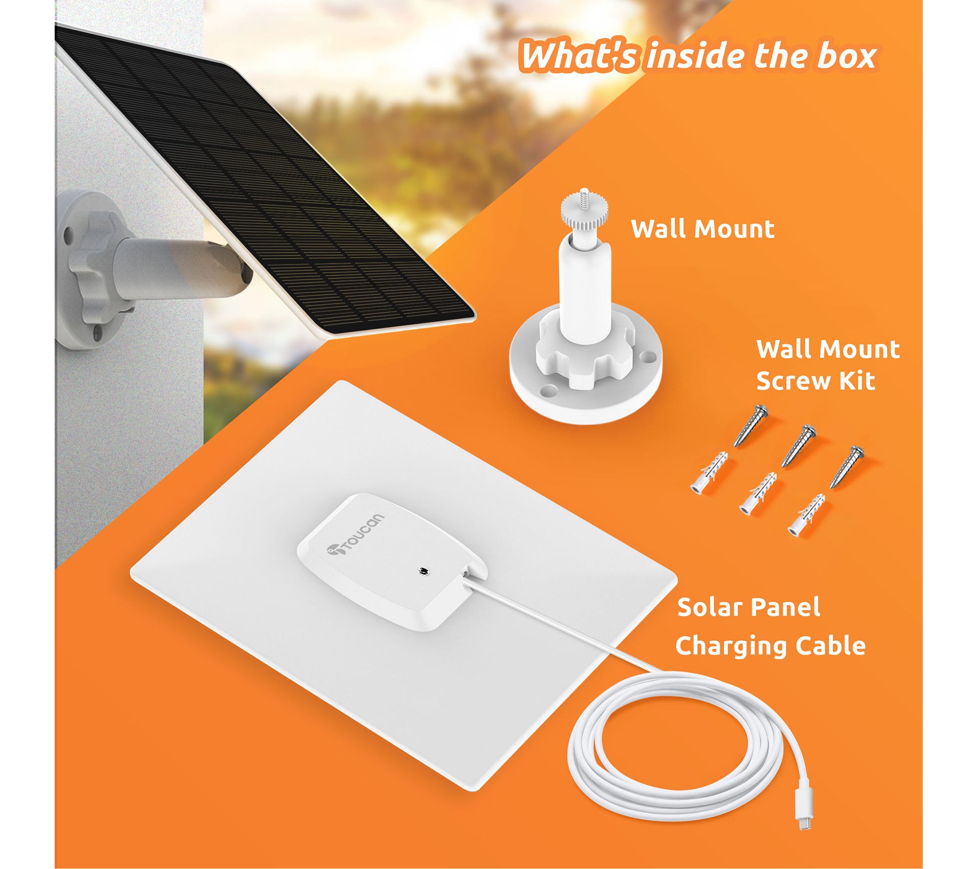 • Includes 3W solar panel, wall mount, and Type-C USB charging cable