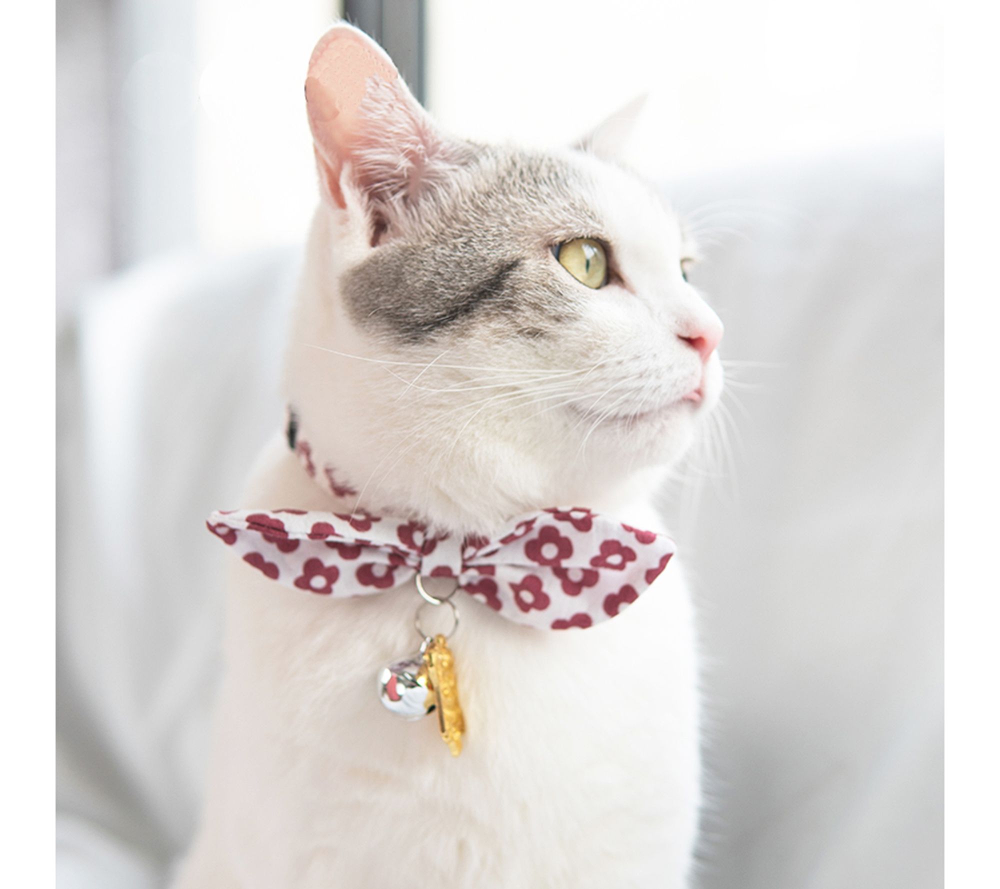 Dress up your pet in this darling designer collar adorned with a large bowtie and bell charm. It's perfect for adding a touch of class to your furry friend's everyday look or special occasions. From Touchcat.