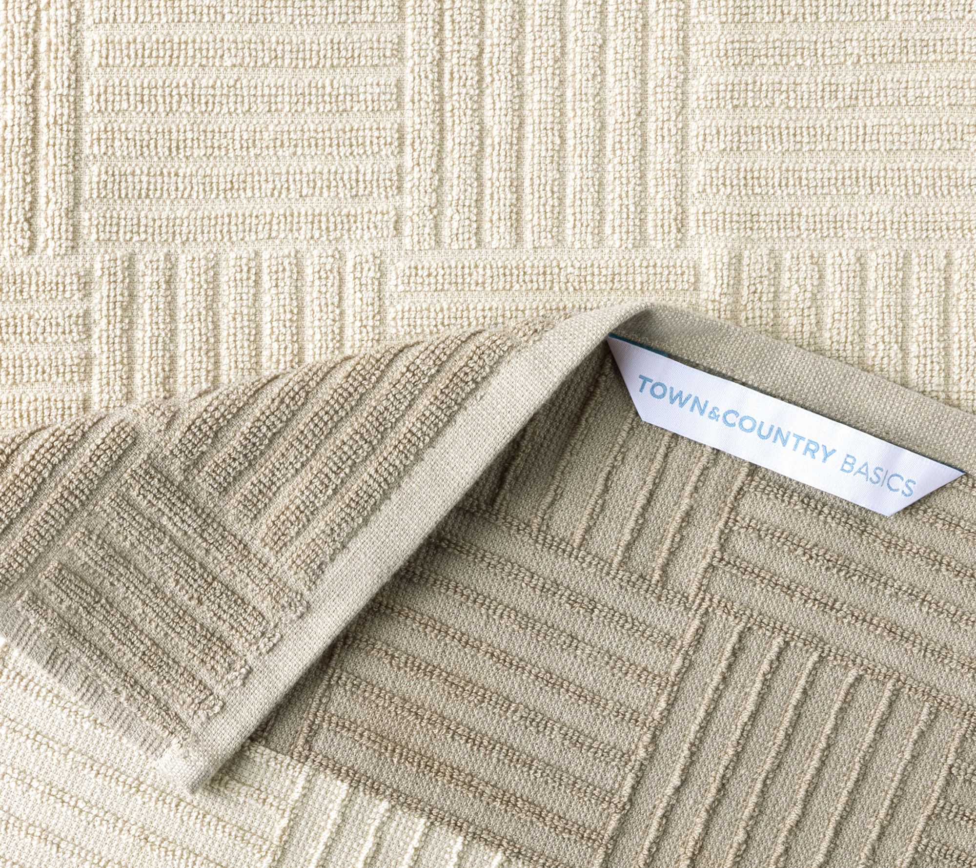 • Absorbent basketweave texture and color block design