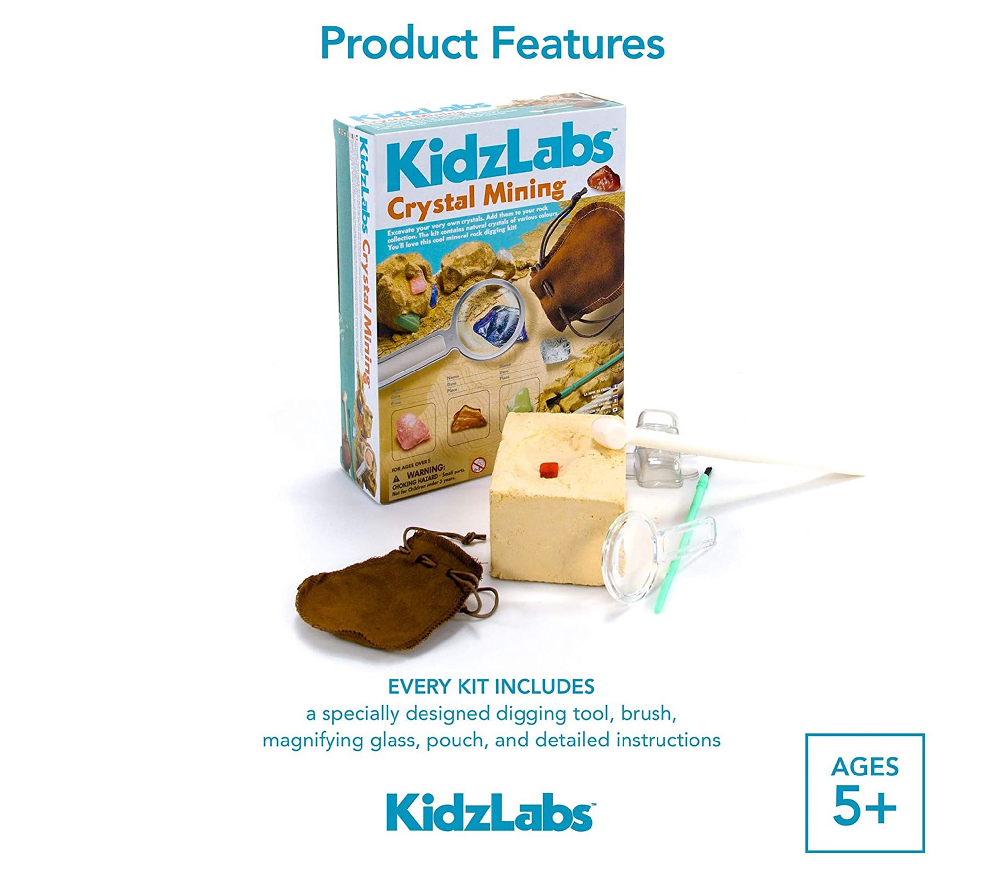 • Includes one plant box, eight crystals, one digging tool, one brush, one magnifier, one pouch bag, instructions, and one display set