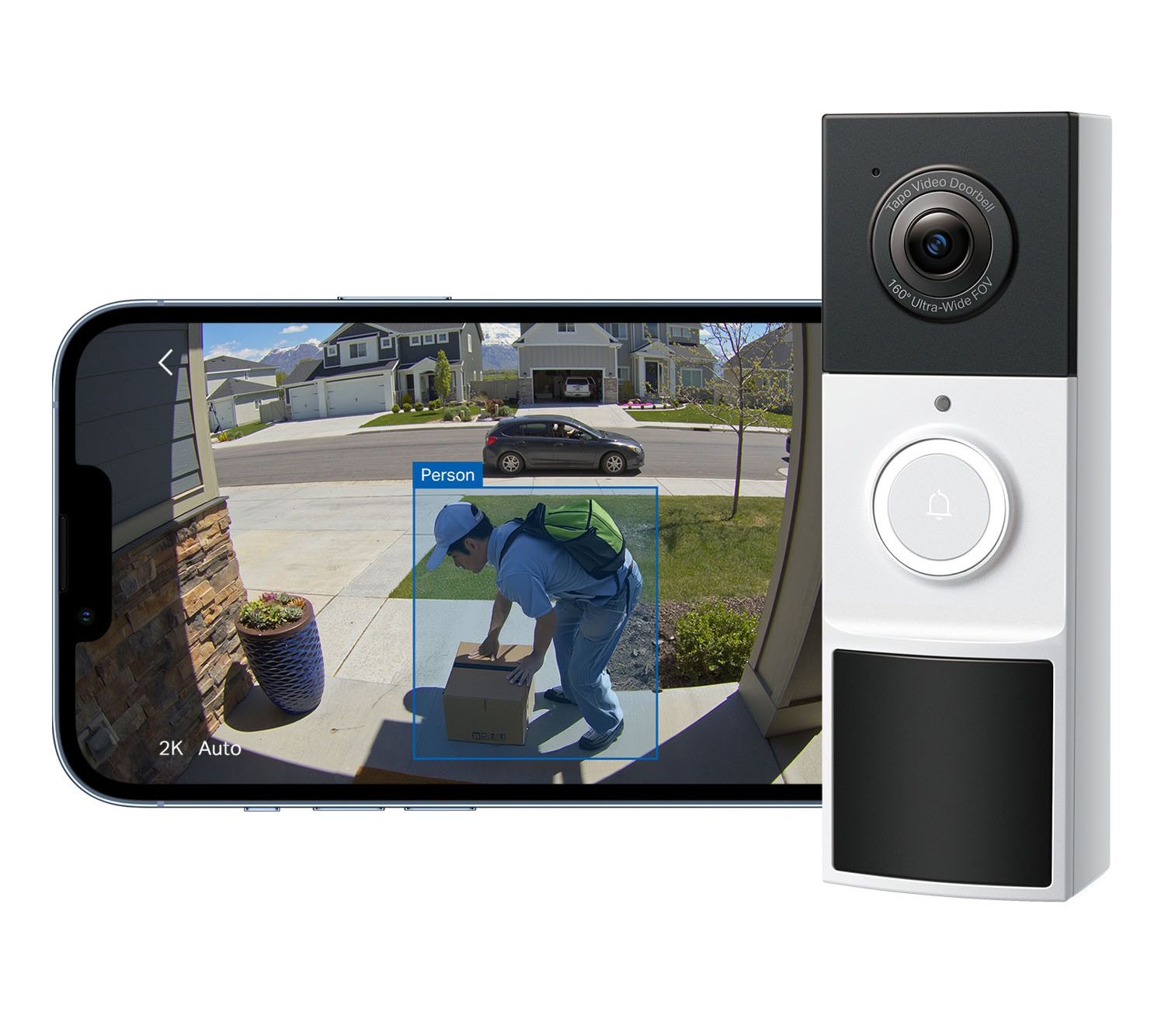 TDB21 Tapo video doorbell: 2K live video, wide 160-degree view, night vision, ring call, two-way audio, smart detection