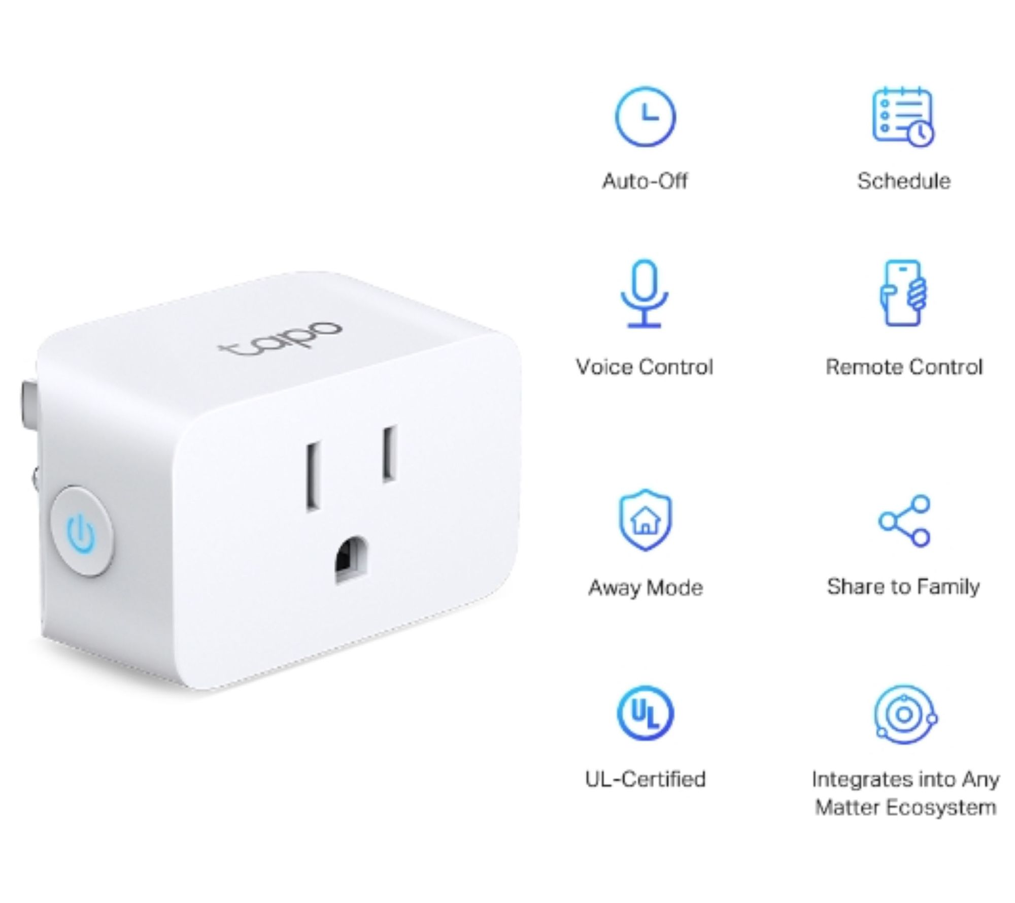 Elevate your home's efficiency with the TP-Link Tapo TP15 mini Wi-Fi smart plug, a device that seamlessly integrates into TP-Link's Matter system for effortless control. Its compact design helps ensure it doesn't block adjacent outlets. With features like remote control, Away mode, and easy setup via Bluetooth, managing your home devices has never been more convenient. From TP-Link.