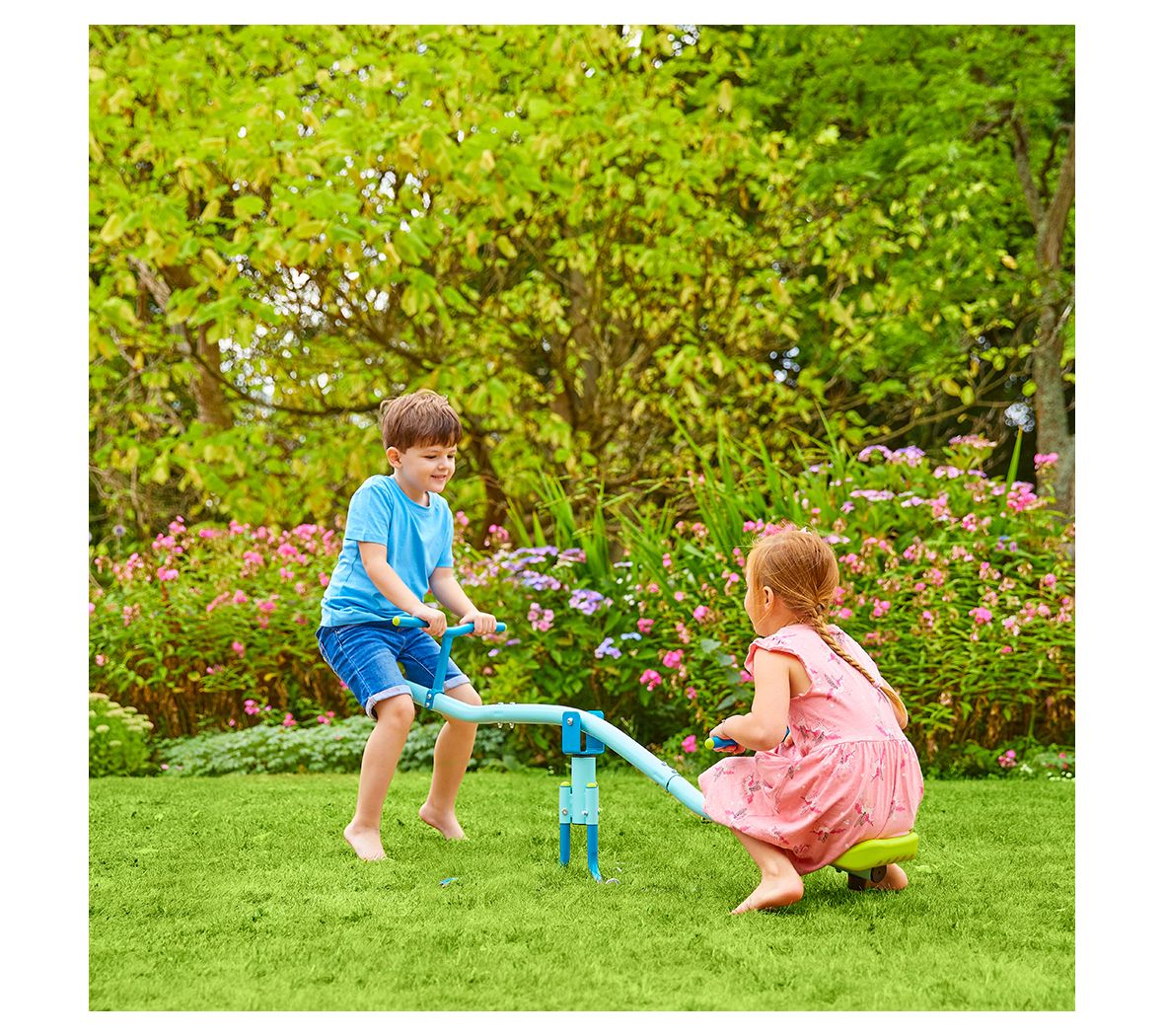 Watch your little ones giggle and grow as they enjoy the Spiro seesaw, a unique take on a classic playground favorite. This innovative seesaw not only bounces up and down but also rotates 360 degrees for endless fun. Crafted with a robust powder-coated steel frame and equipped with a stable base and ground stakes, it ensures an exciting and comfortable ride. From TP Toys.