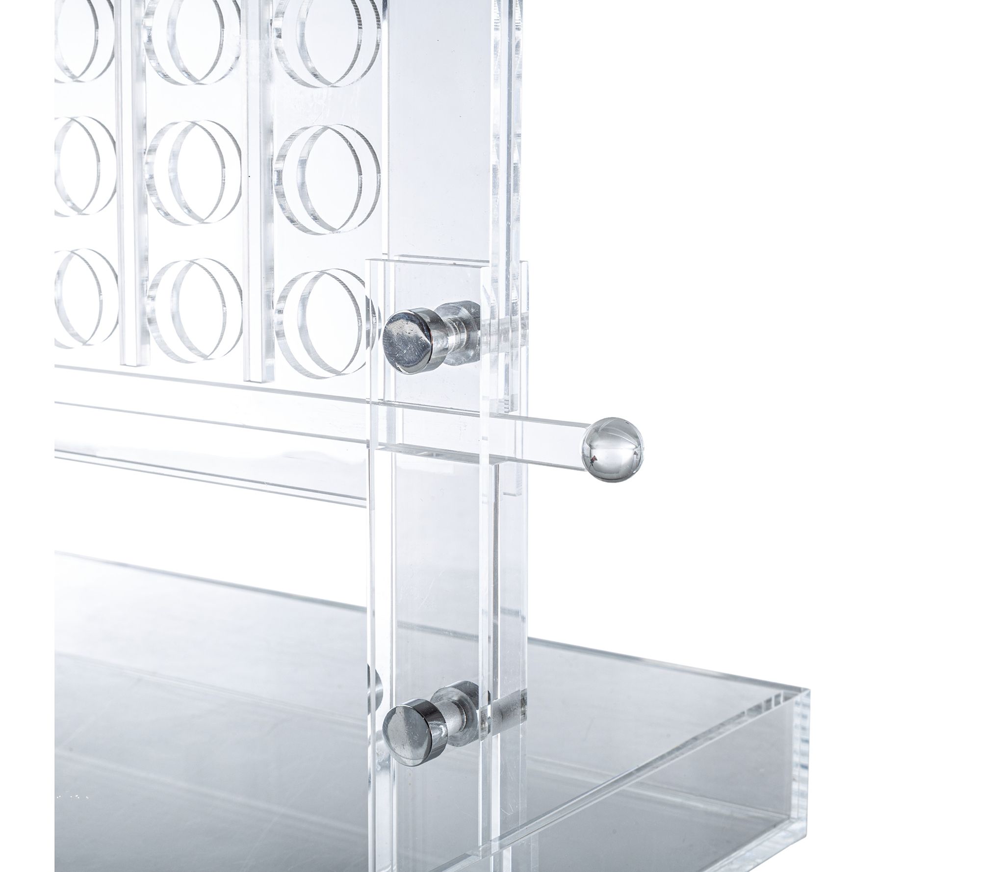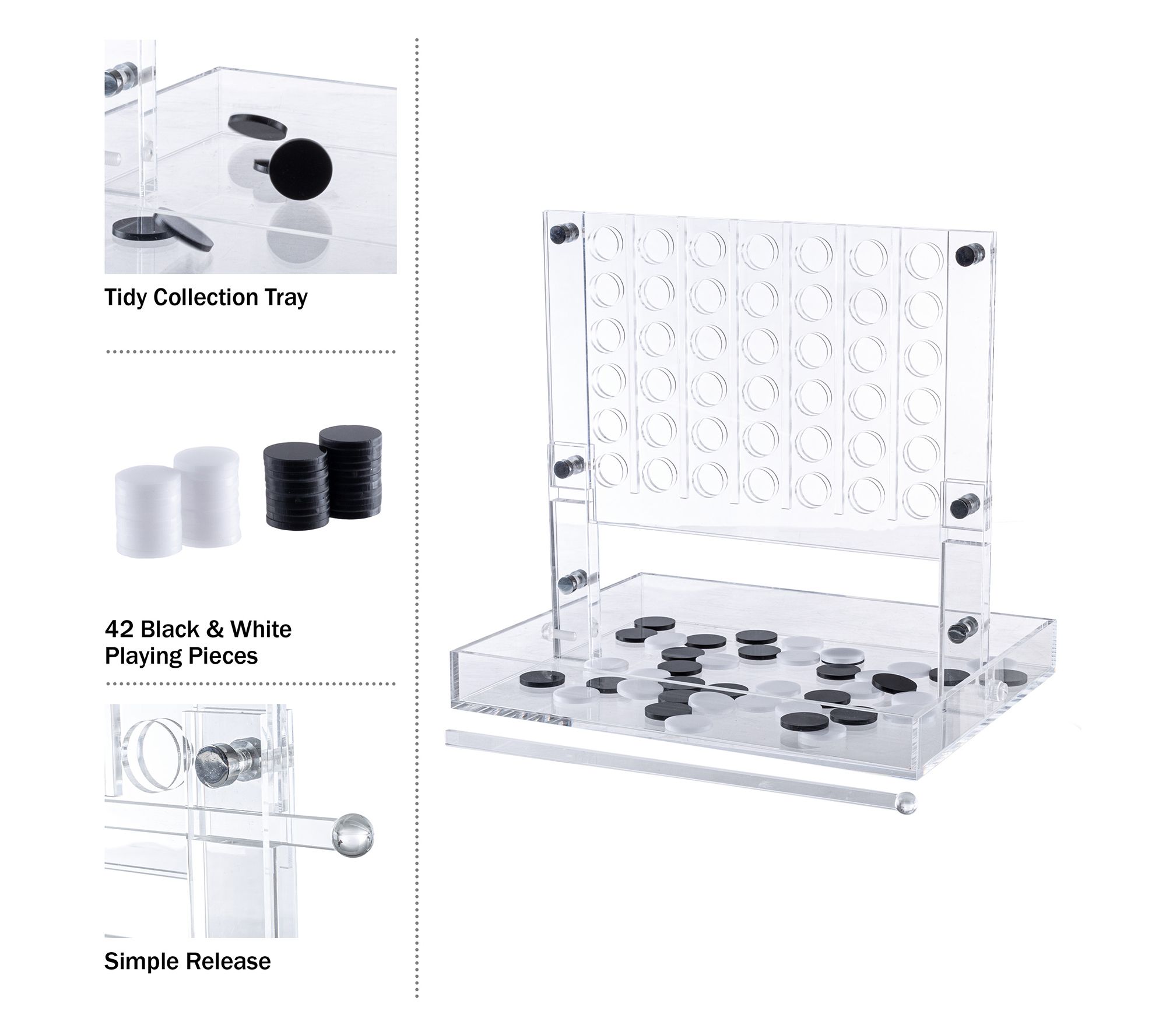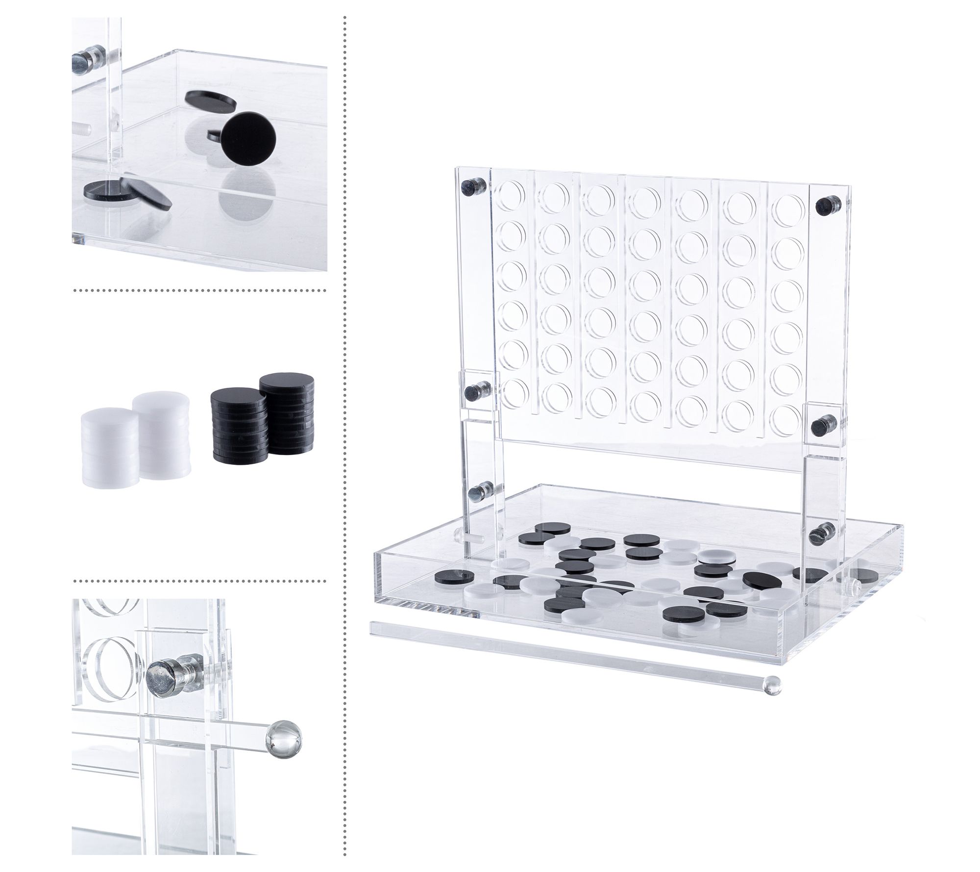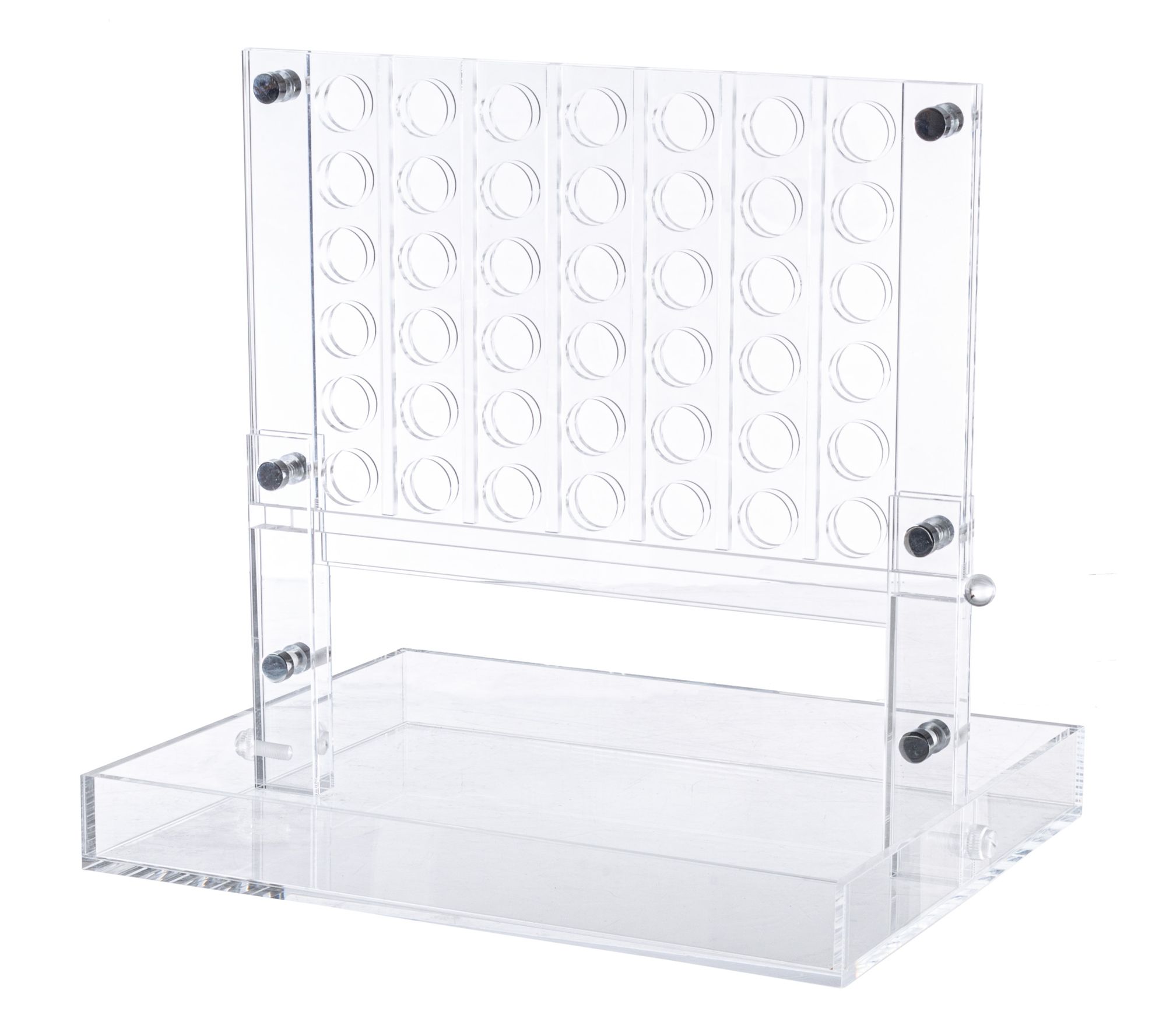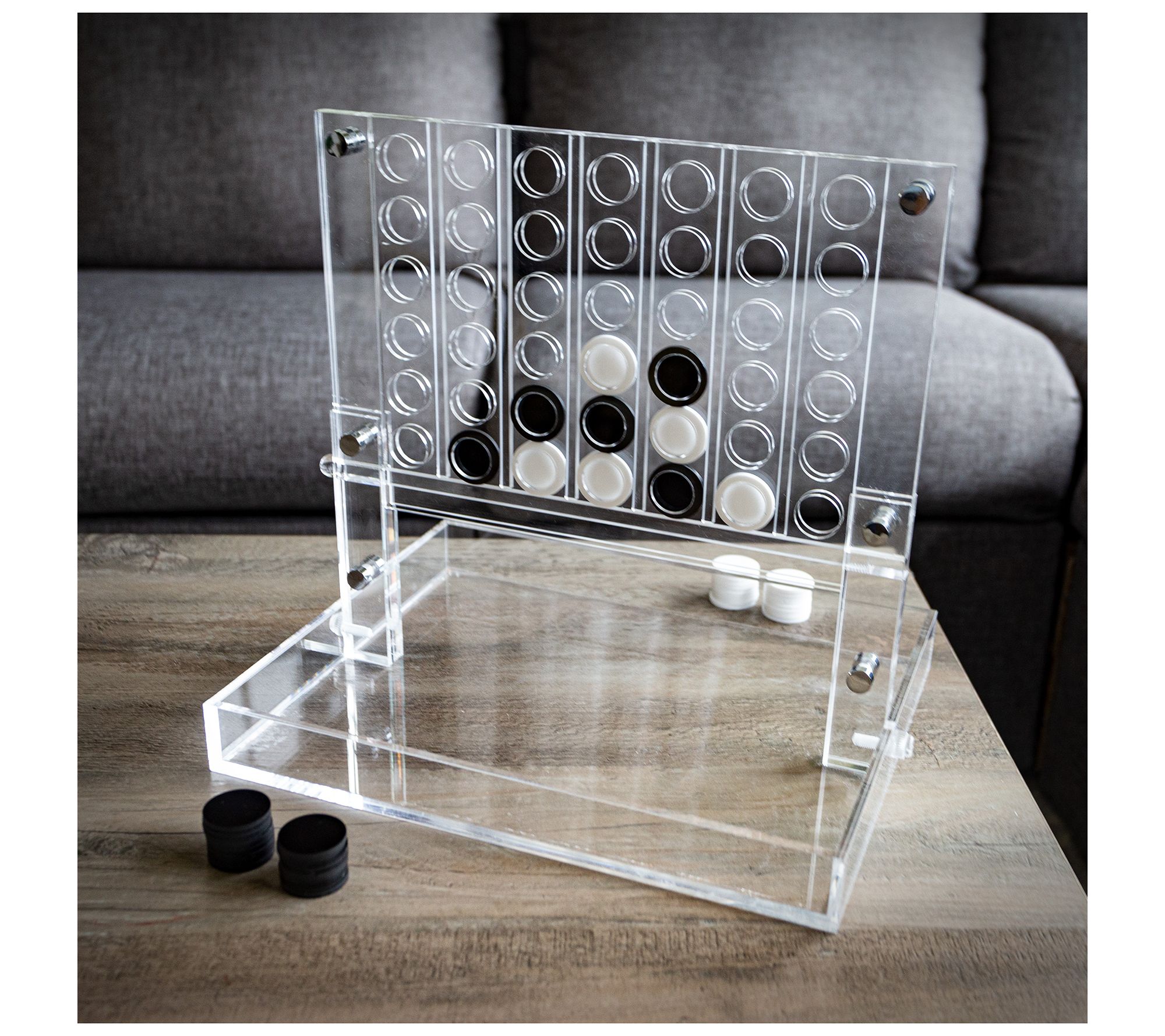 Challenge your mind while adding a stylish accent to your home with the Acrylic 4 in a Row Strategy Game by Trademark Games. With its sleek acrylic frame and 42 black and white playing chips, this game is perfect for both play and display. Whether on your coffee table, office bookshelf, or dorm room, it serves as a fun conversation piece. From Trademark Games.