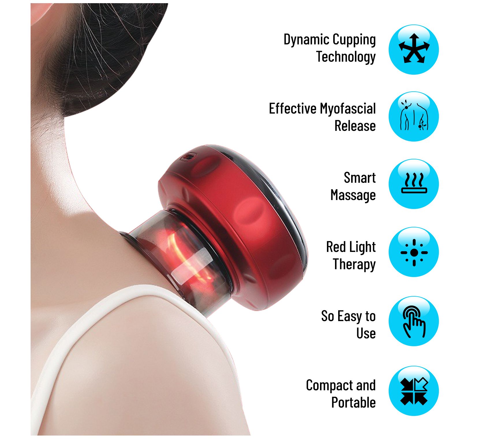 • Includes cupping device, charging cable, and charging adapter