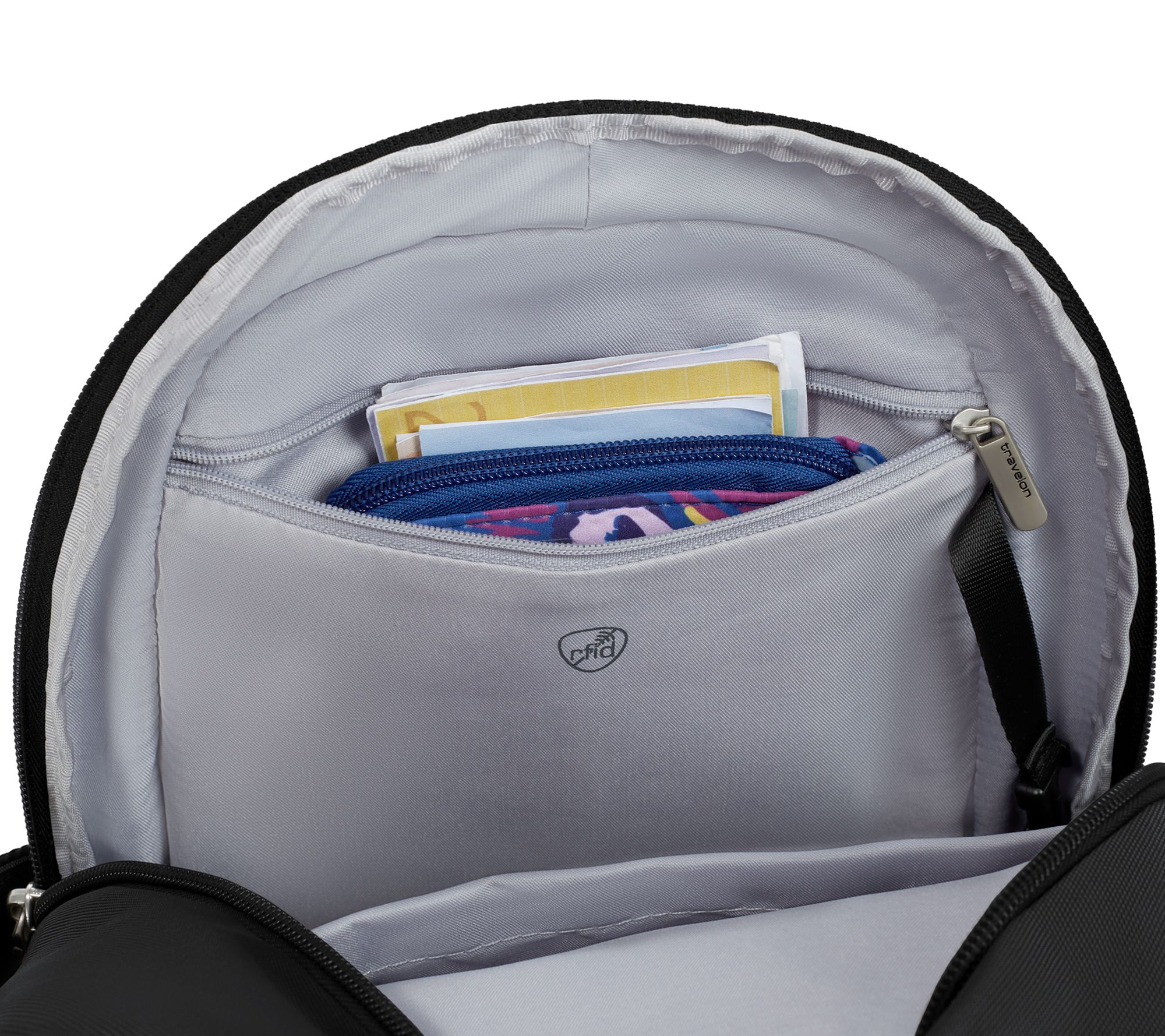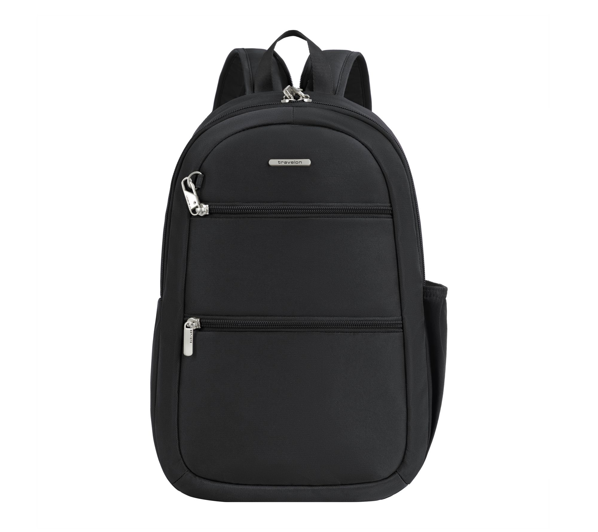 Whether your day takes you across campus, through city streets, or on a weekend getaway, this backpack delivers everyday dependability with a classic silhouette and thoughtful organization. Multiple zippered pockets, a padded sleeve for your tablet, and a tethered key clip keep everything in place, while adjustable straps offer a comfortable fit for any outing. From Travelon.