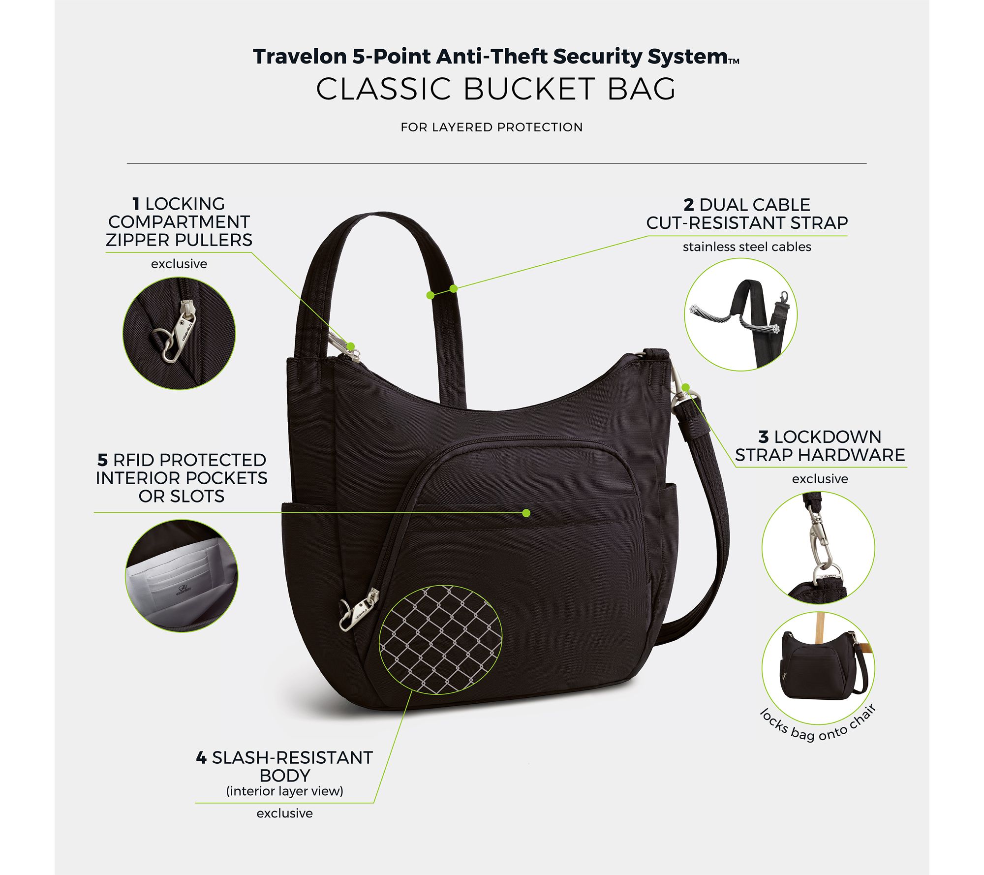 Travelon Anti-Theft Classic Crossbody Bucket Bag