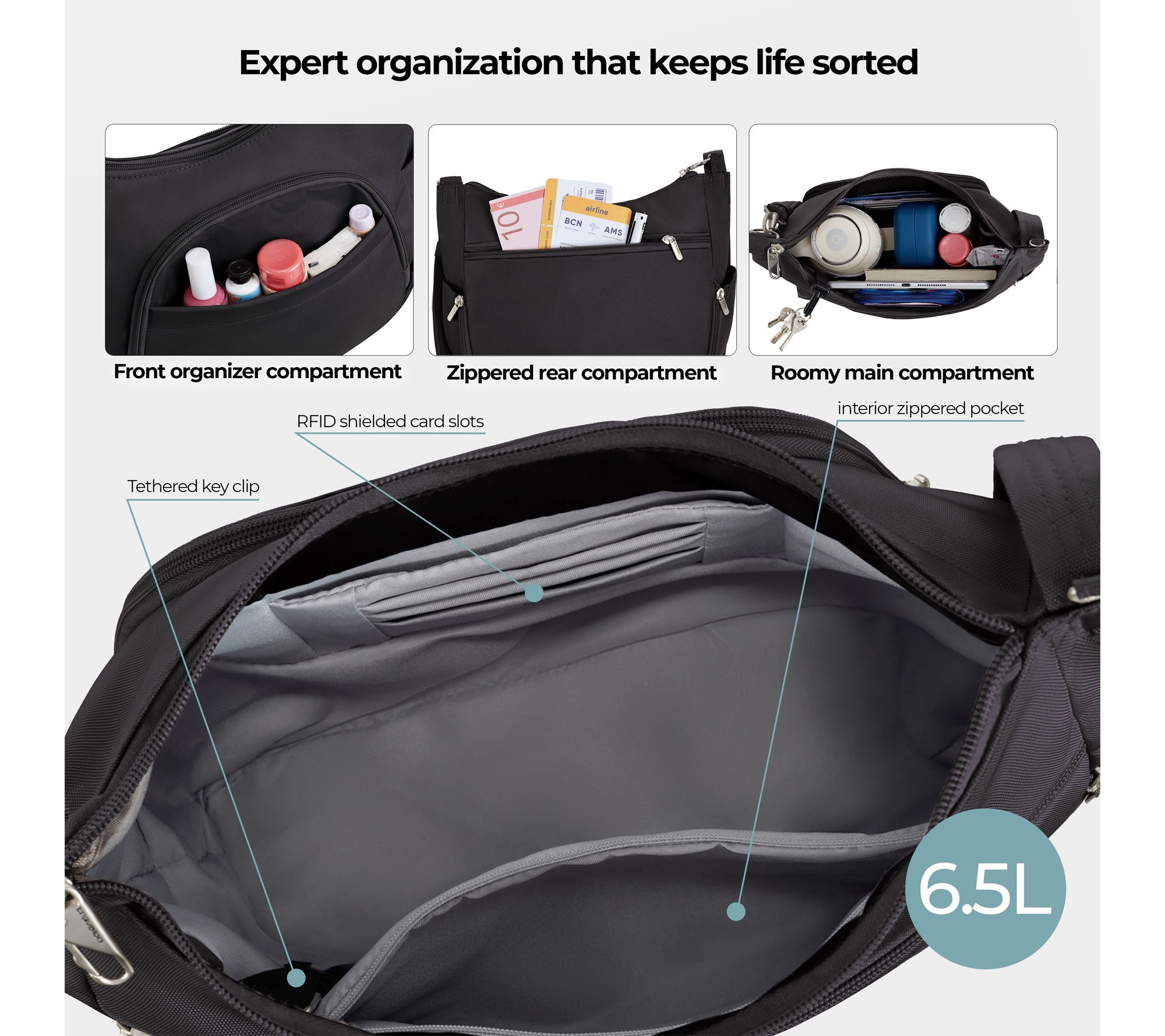 A day of errands, sightseeing, or city exploring is made more streamlined with this crossbody bag -- your essentials stay close, organized, and secure in every moment. Thoughtful anti-theft features and purpose-built pockets keep you ready for anything, whether you're grabbing your passport or reaching for your water bottle. From Travelon.