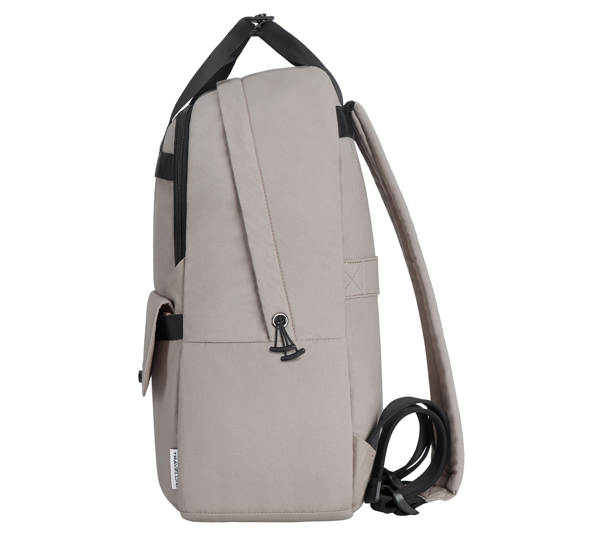 • Zip closure, double handle, backpack straps, front zip pocket, zip pocket with front flap, side slip pocket