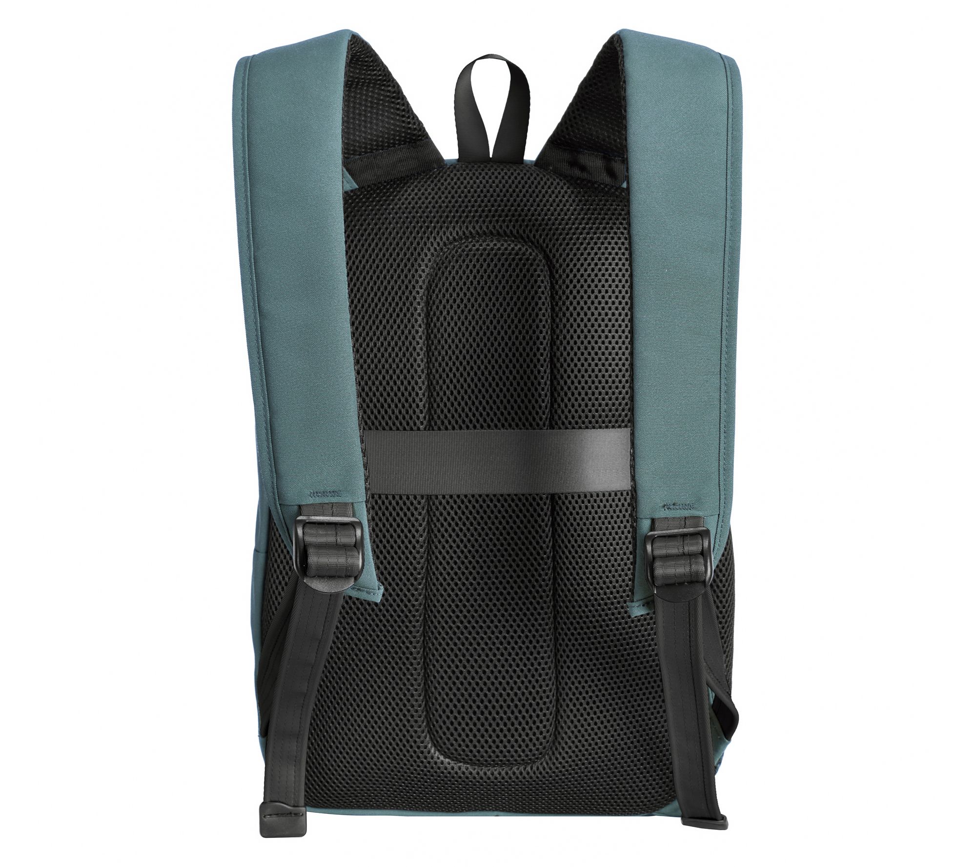• Padded tech sleeve for up to 15.6" laptop, interior RFID blocking zippered pocket, two media drop pockets
