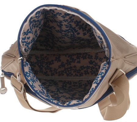 In the bag. Whether you wear it over your shoulder or across the body with an adjustable shoulder strap, this bag will definitely take anything you give it. There are two zip pockets on the front for small items, plus a large zip compartment inside that houses card slots, wall pockets, pen and lipstick loops, and a removable LED light so you can find whatever you're looking for. From Travelon.