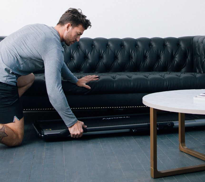This thin, lightweight treadmill stores easily in a closet or against a wall, so you can get your steps in and save space when you're done. It even comes with a watch that turns the machine on and off and lets you control the speed. How's that for convenience? From Treadly.