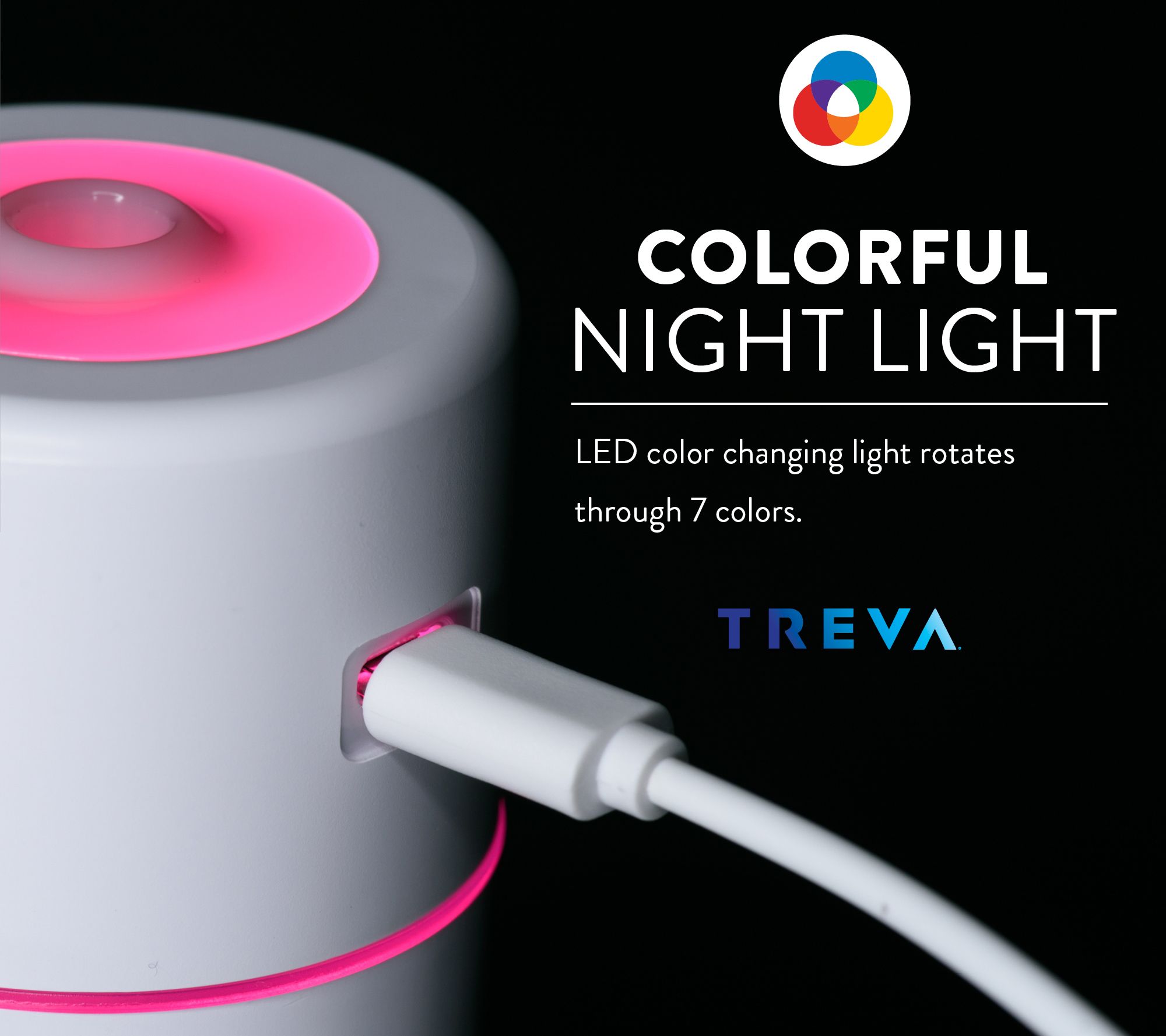 Combat dry air in your home or office with this Drop Light humidifier. Its portable size makes it perfect for keeping by your bed or on your desk while its whisper-quiet operation won't disturb you or those around you. It's equipped with an easy-to-use single-button control that operates two mist modes and the 7-color gentle nightlight. From Treva.