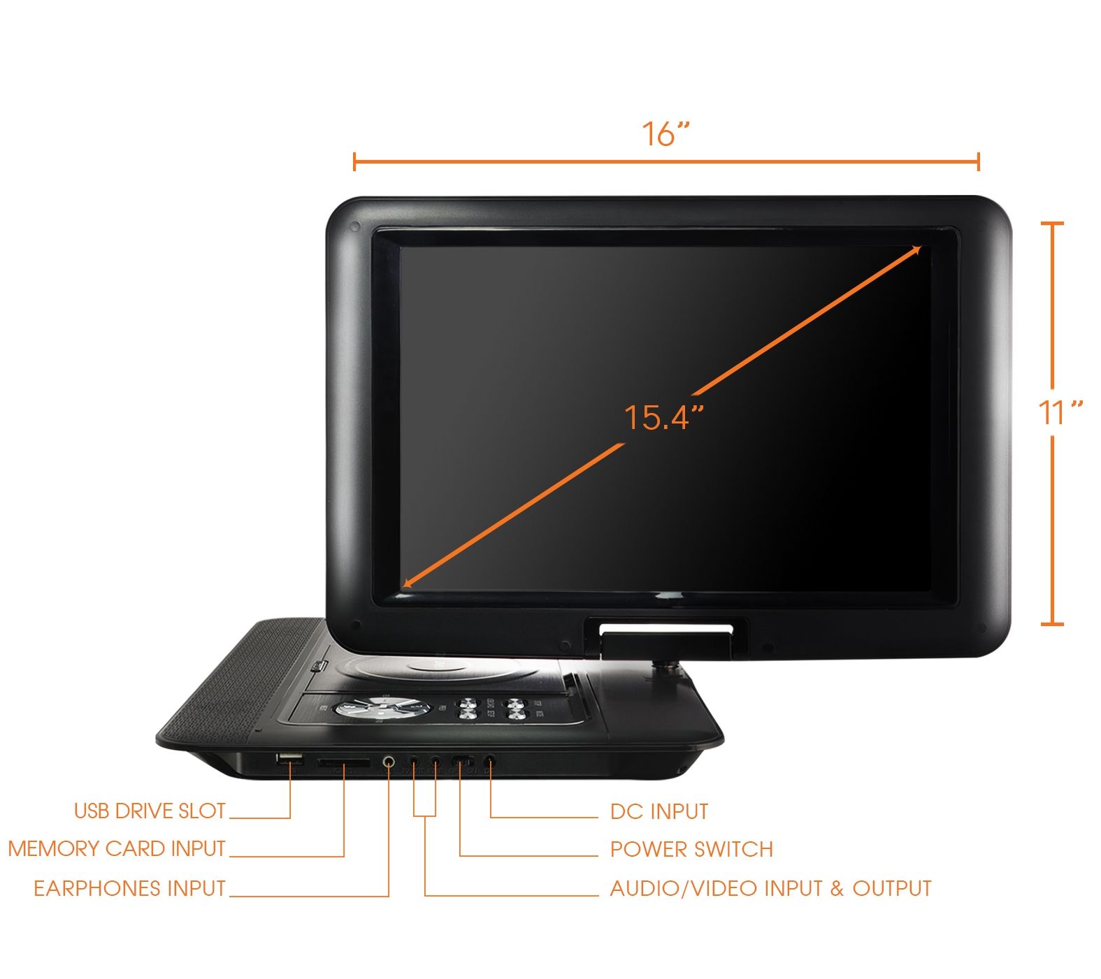 Trexonic 15.4" Portable DVD Player with SwivelLCD Display