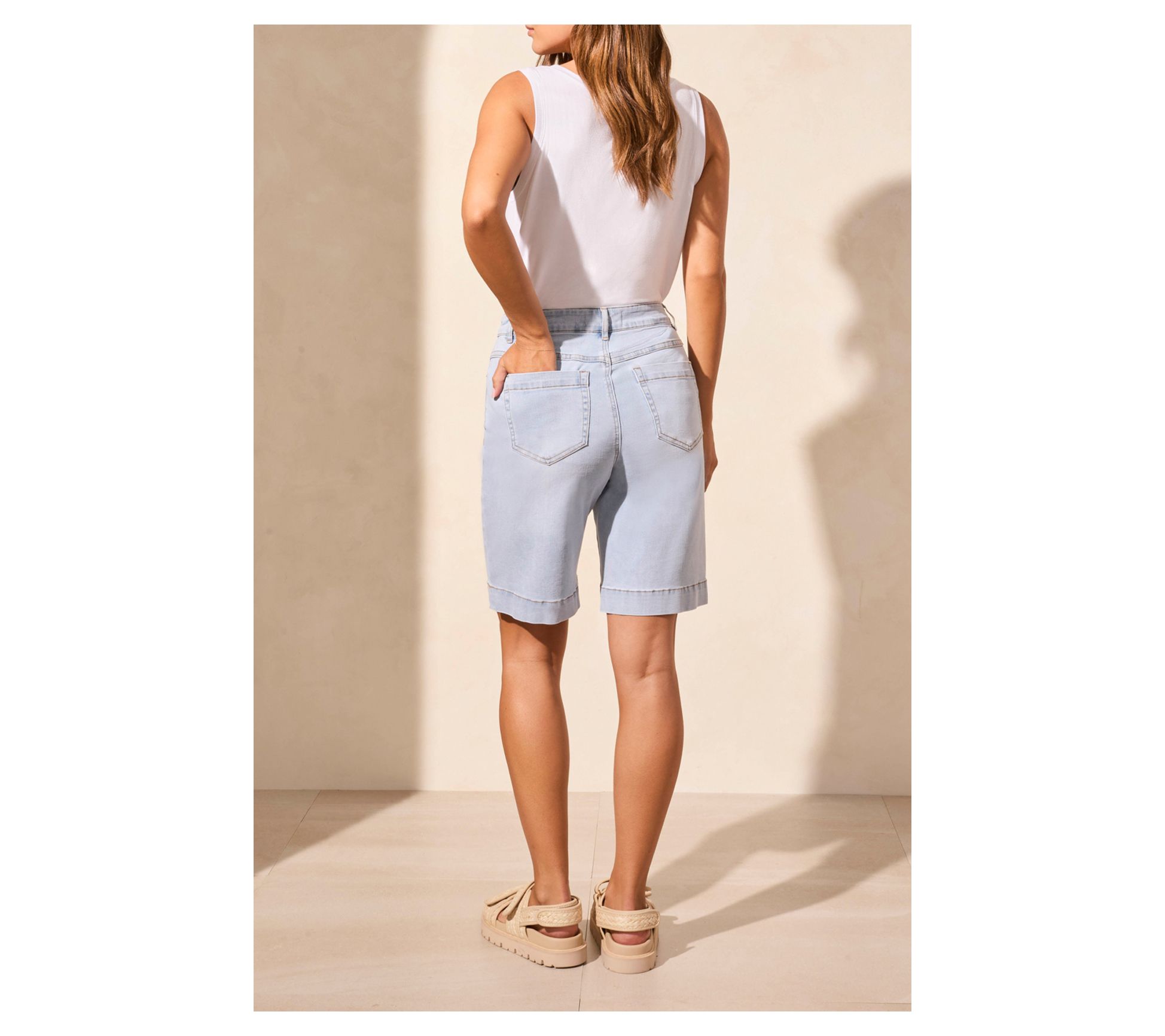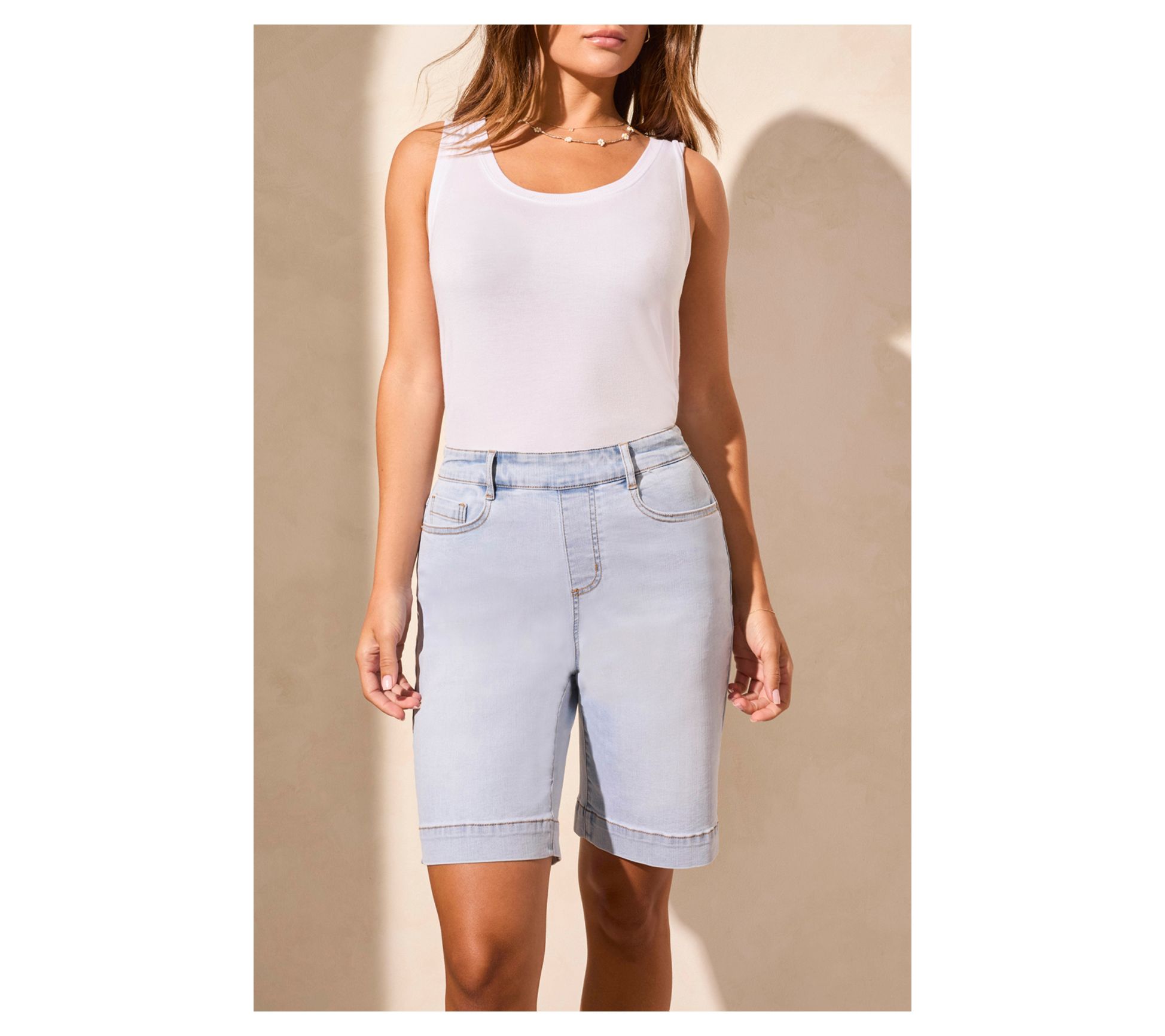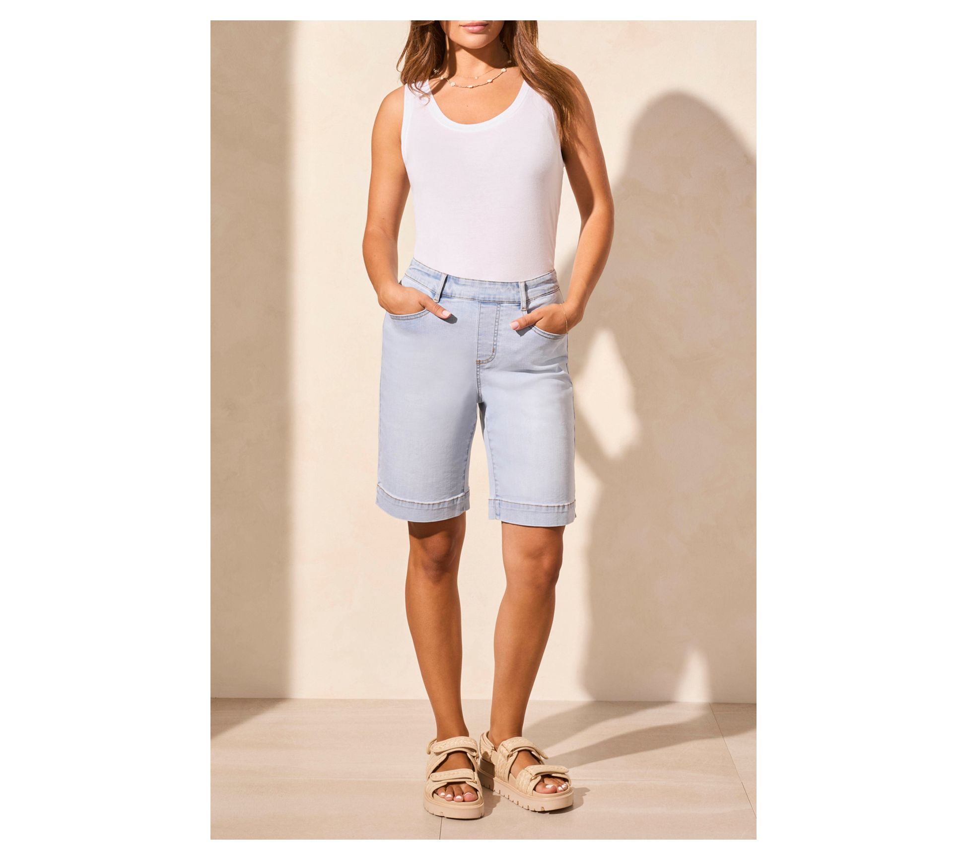 Embrace the warm weather with ease in these comfort stretch pull-on Bermuda shorts. Perfect for spring and summer outings, the relaxed fit and A-line silhouette ensure all-day wearability without sacrificing style. These shorts offer effortless movement and a modern touch to your wardrobe, making them a versatile choice for any casual occasion. From Tribal.