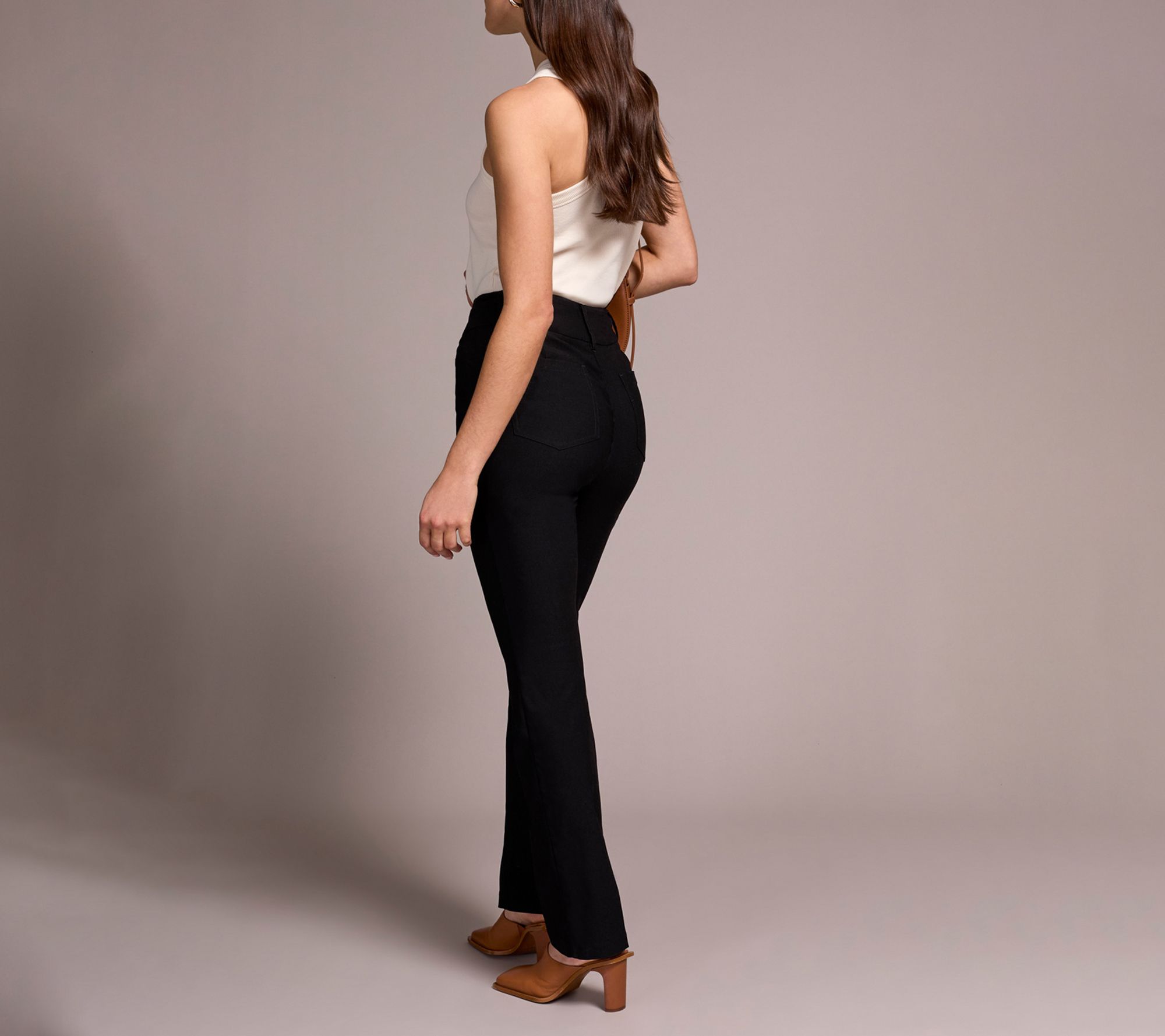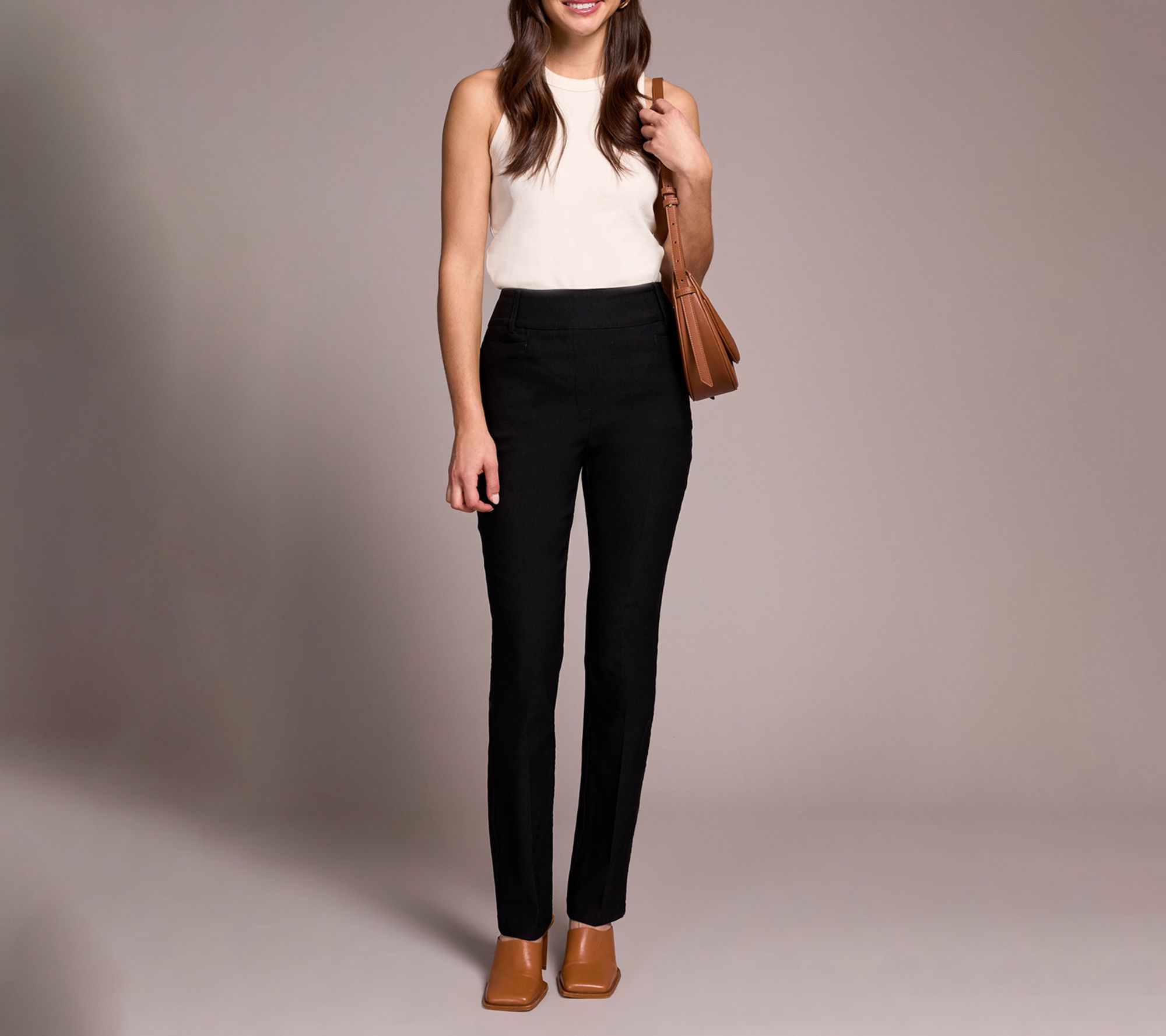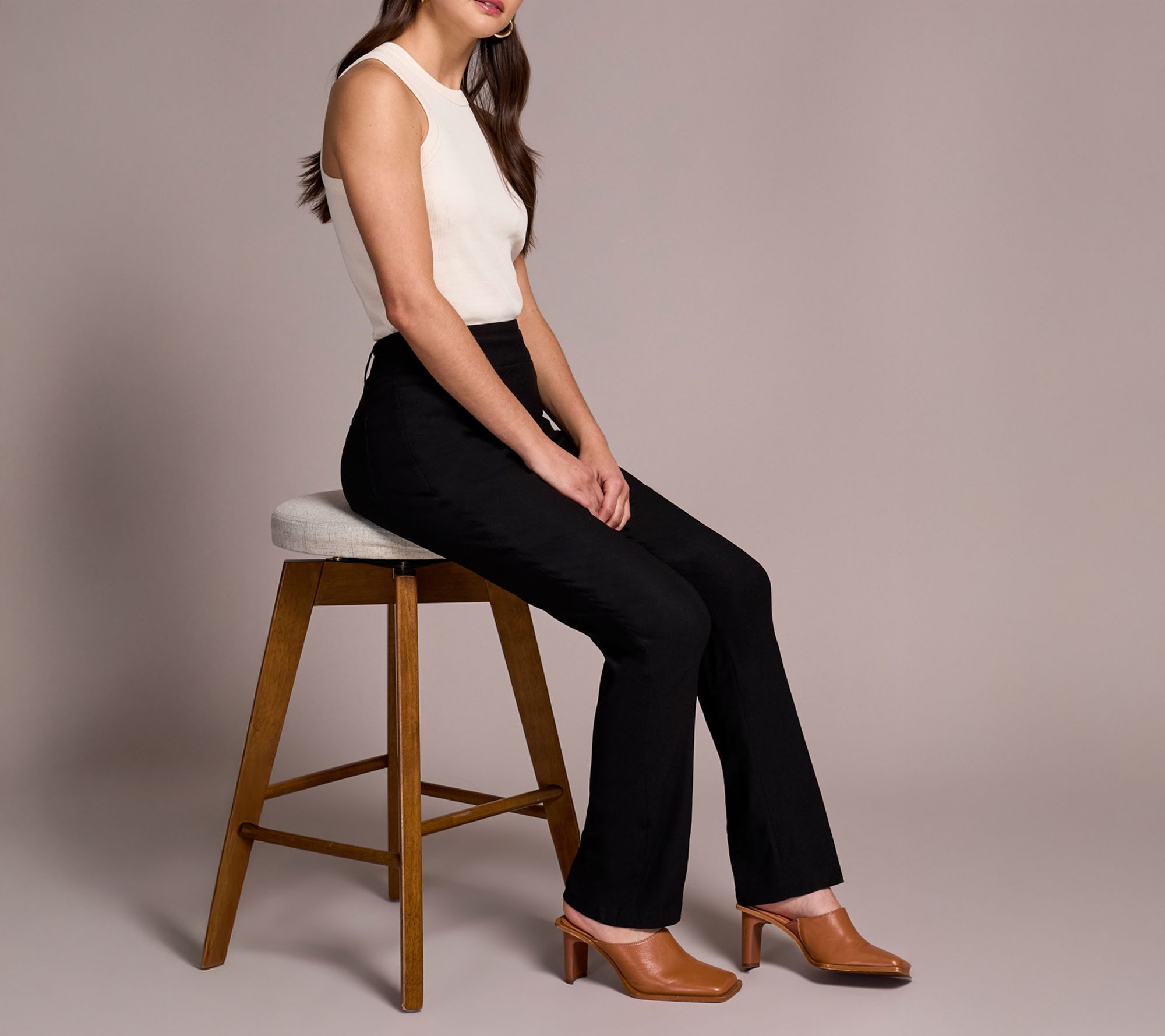 Ready for morning meetings or weekends around town, these slim boot-leg pants feature stretch bengaline twill that moves with you no matter the day. The pull-on elastic waistband with FLATTEN IT technology ensures a smoothing effect and comfortable support, while classic square pockets keep essentials close at hand. From Tribal.