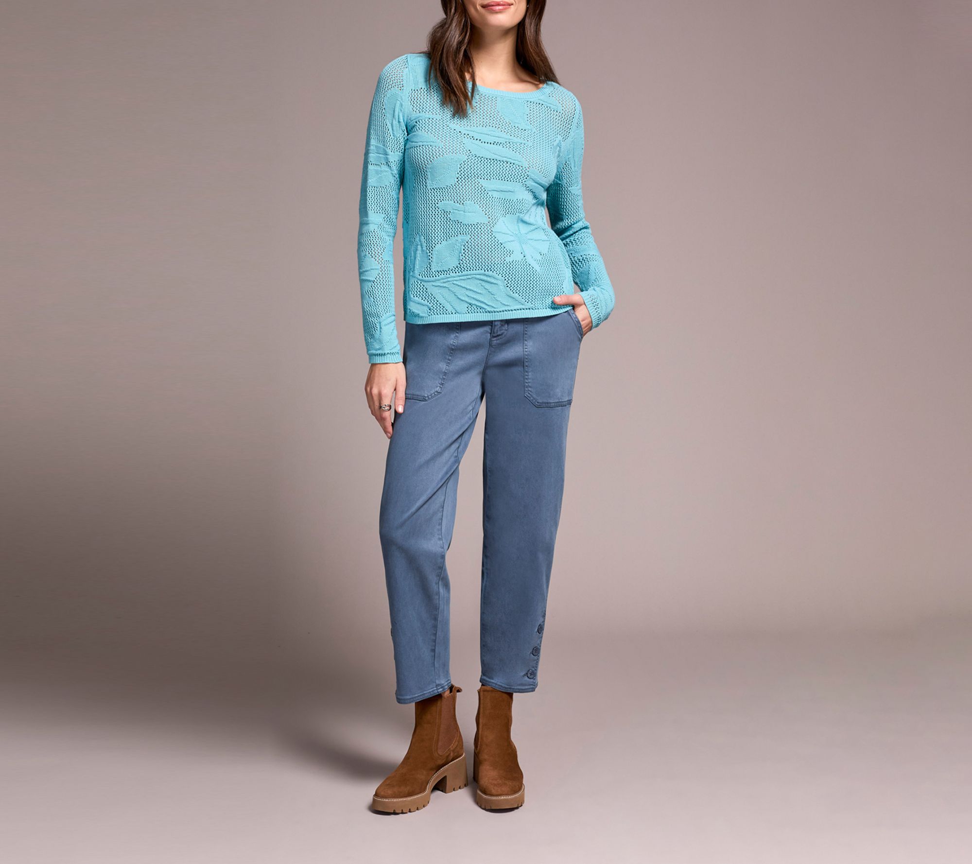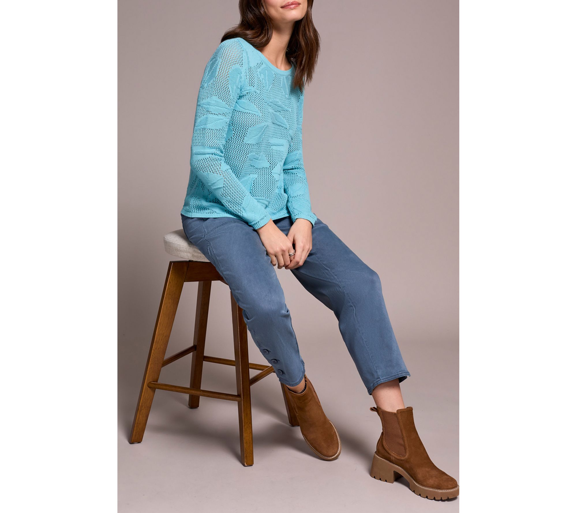 Chilly afternoons call for this vibrant sweater, crafted from breathable combed cotton mesh jacquard and elevated by an eye-catching pattern. Styled with a boat neckline and long sleeves, it brings just the right touch of elegance for coffee runs or cozy get-togethers. From Tribal.