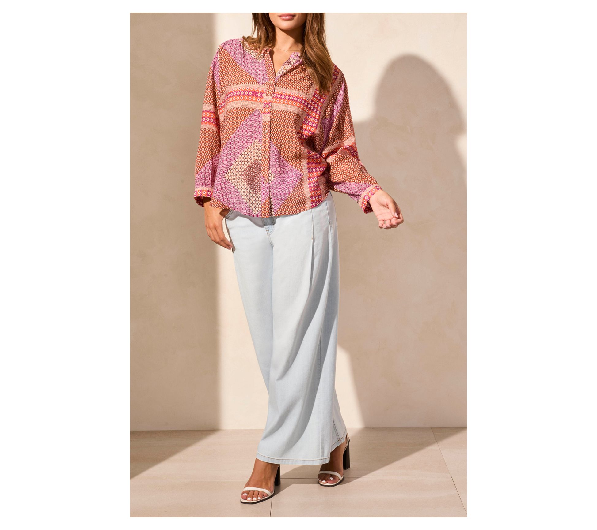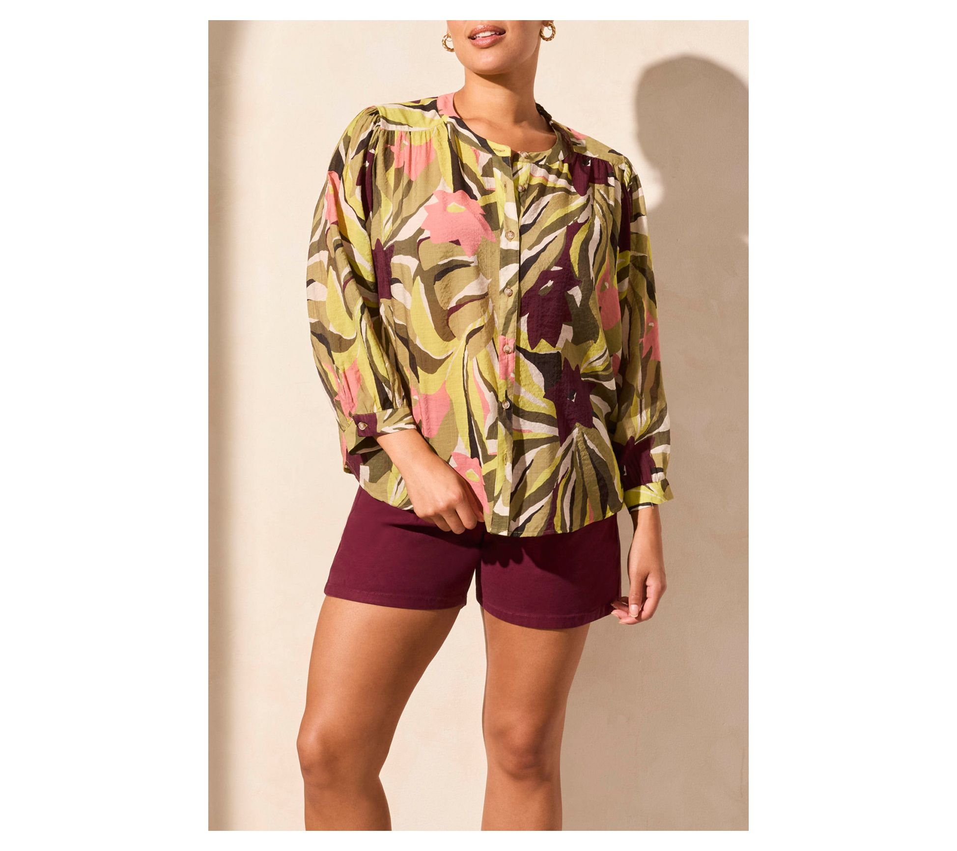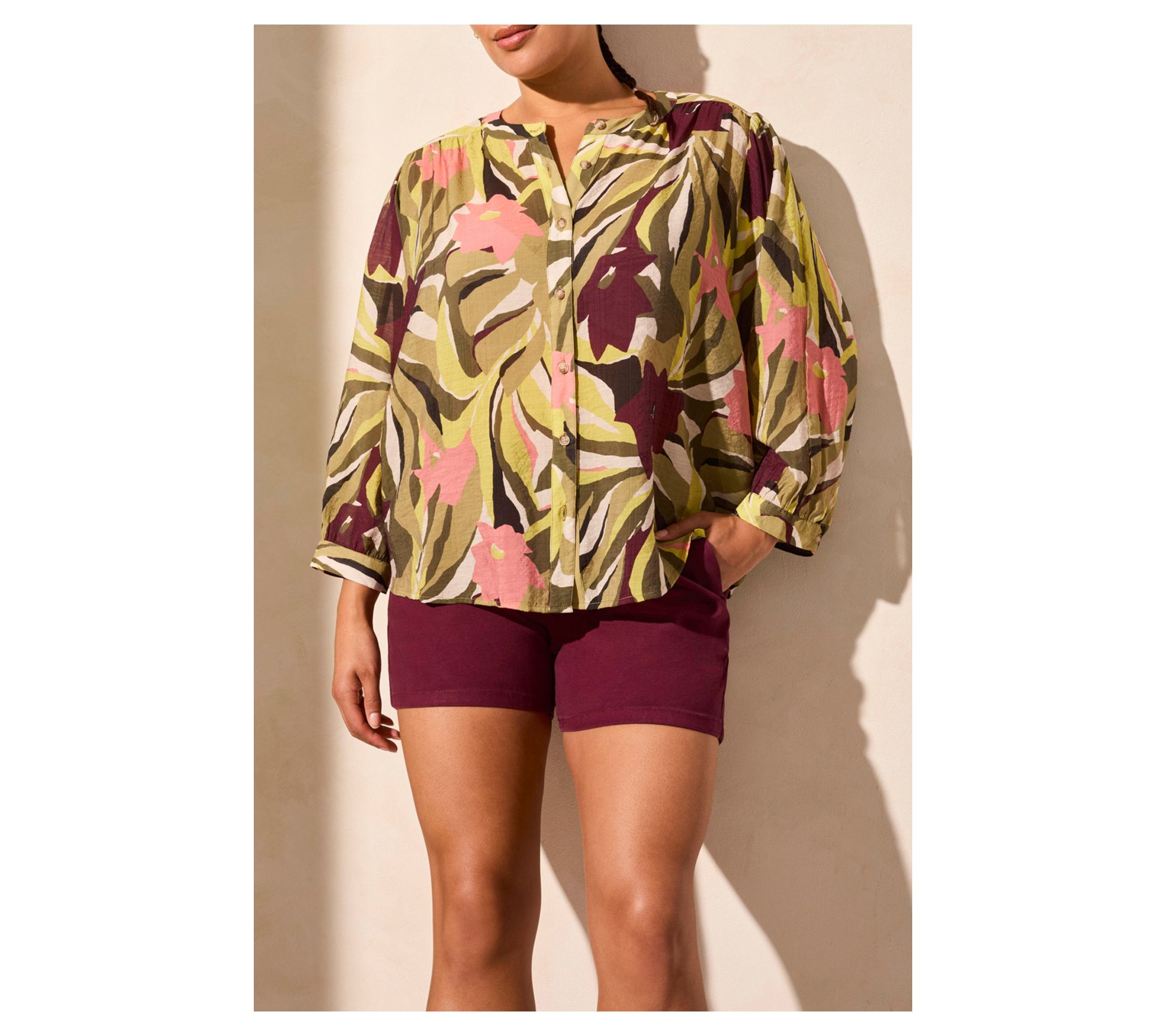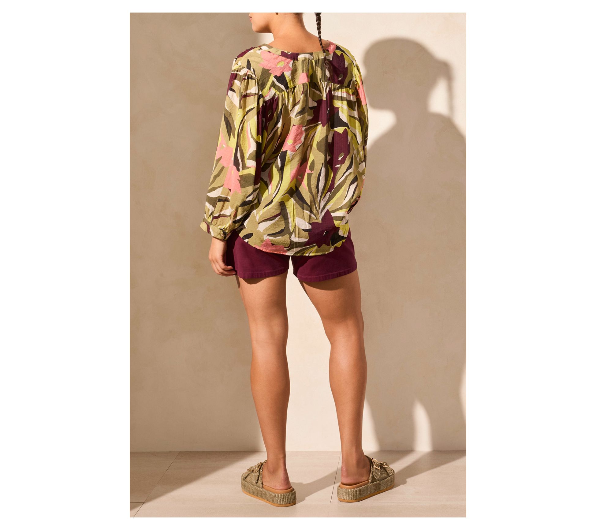 Float effortlessly from brunch to dinner in this lightweight dolman-sleeve blouse, crafted from a luxuriously woven fabric graced with an elegant print. The split neckline adds a touch of stylish breathability, while self-covering buttons provide a detailed finish that elevates your look. From Tribal.