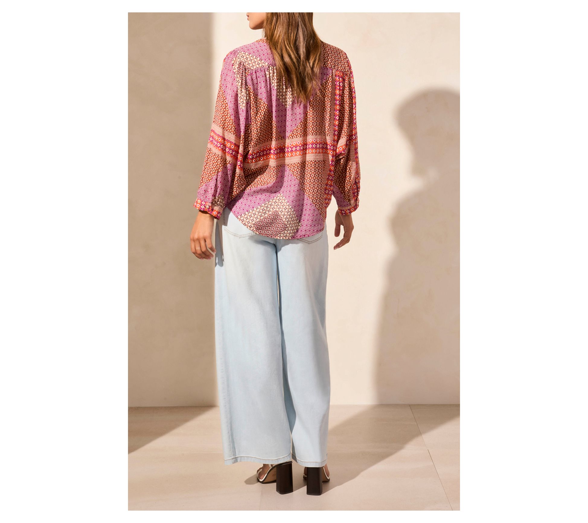 Tribal Flowy Dolman Sleeve Blouse With Self-Covering Buttons