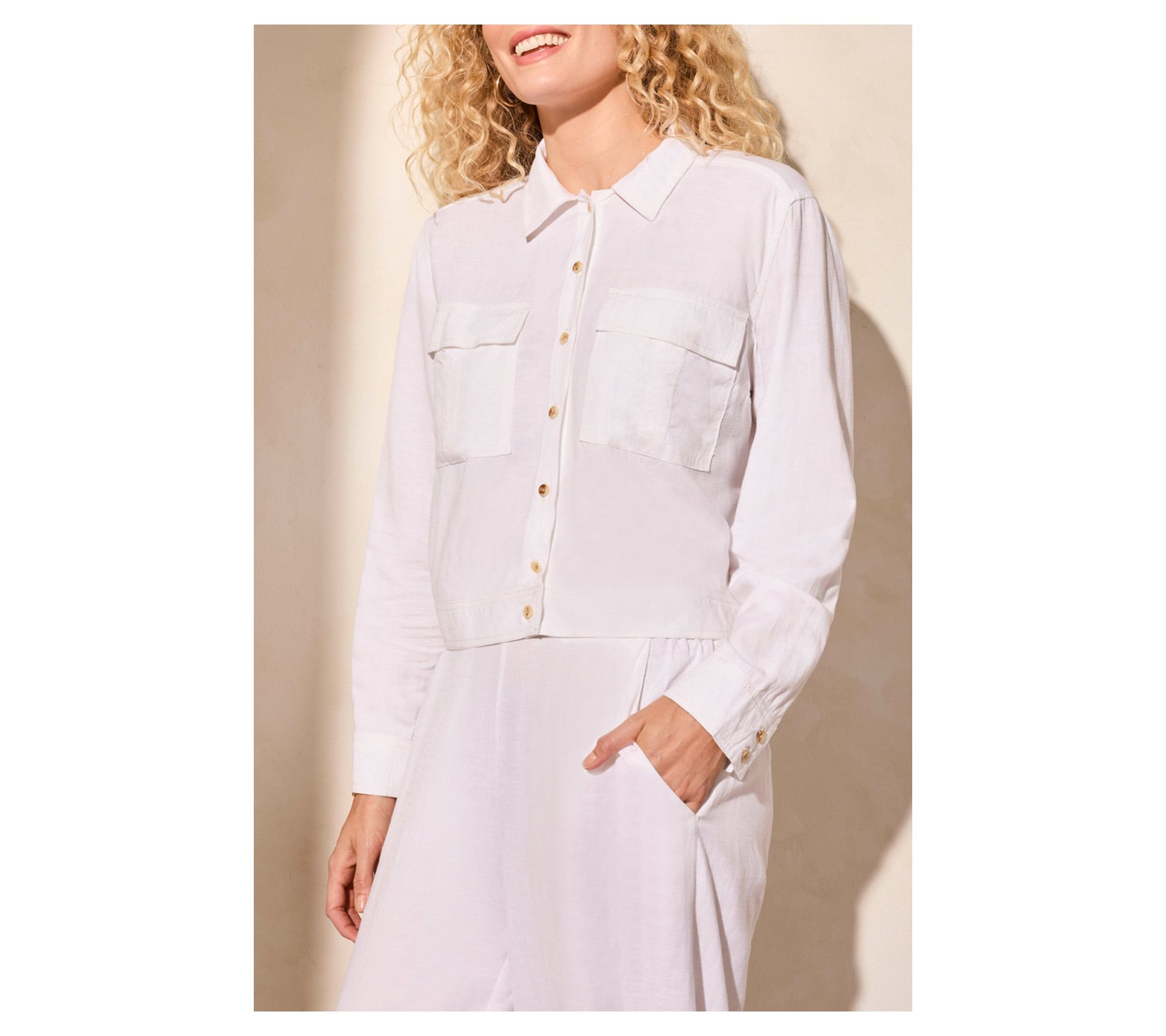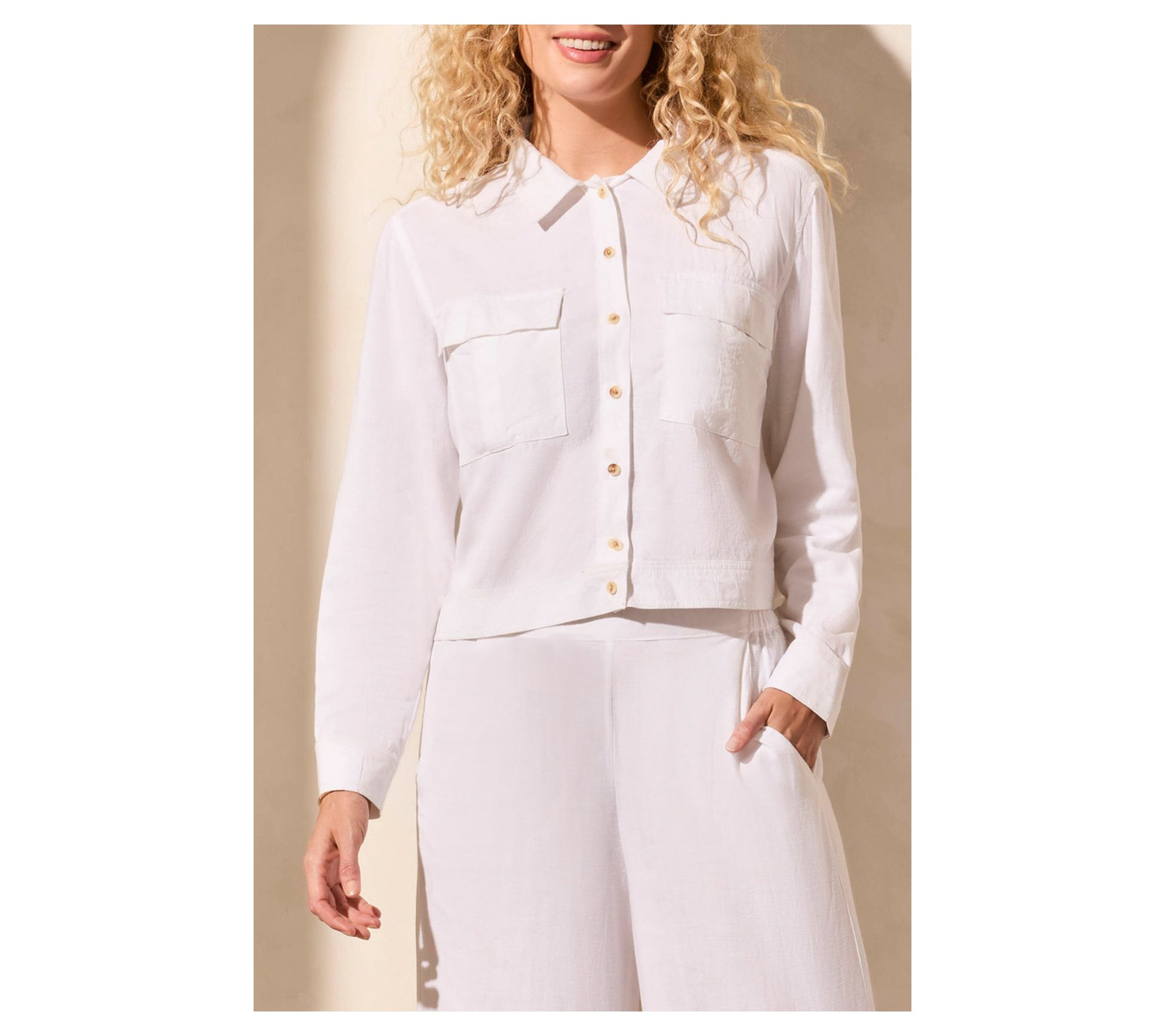 Add a lightweight layer to your ensemble with this woven button-front jacket. Featuring a sophisticated fold-over collar and functional chest pockets, this long-sleeve piece is perfect for spring or summer outings, enhancing any outfit with a touch of classic style. From Tribal.