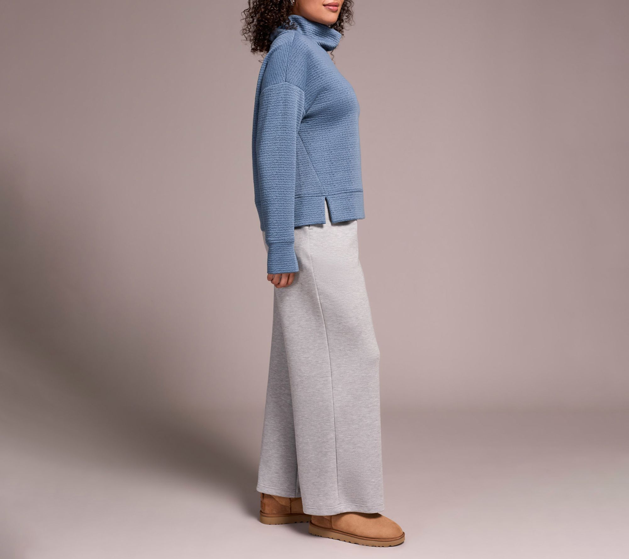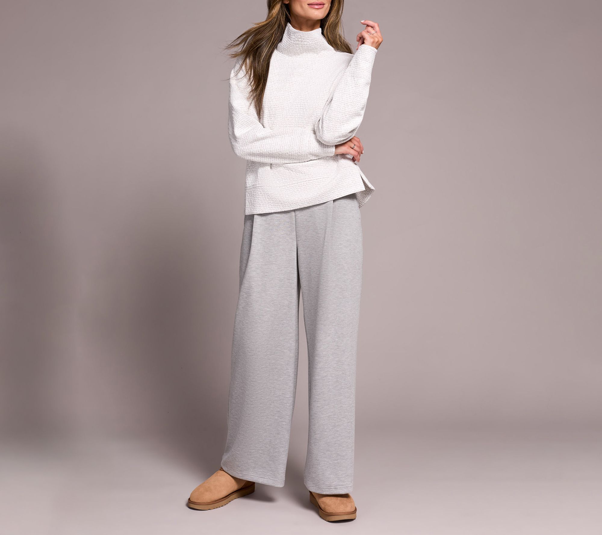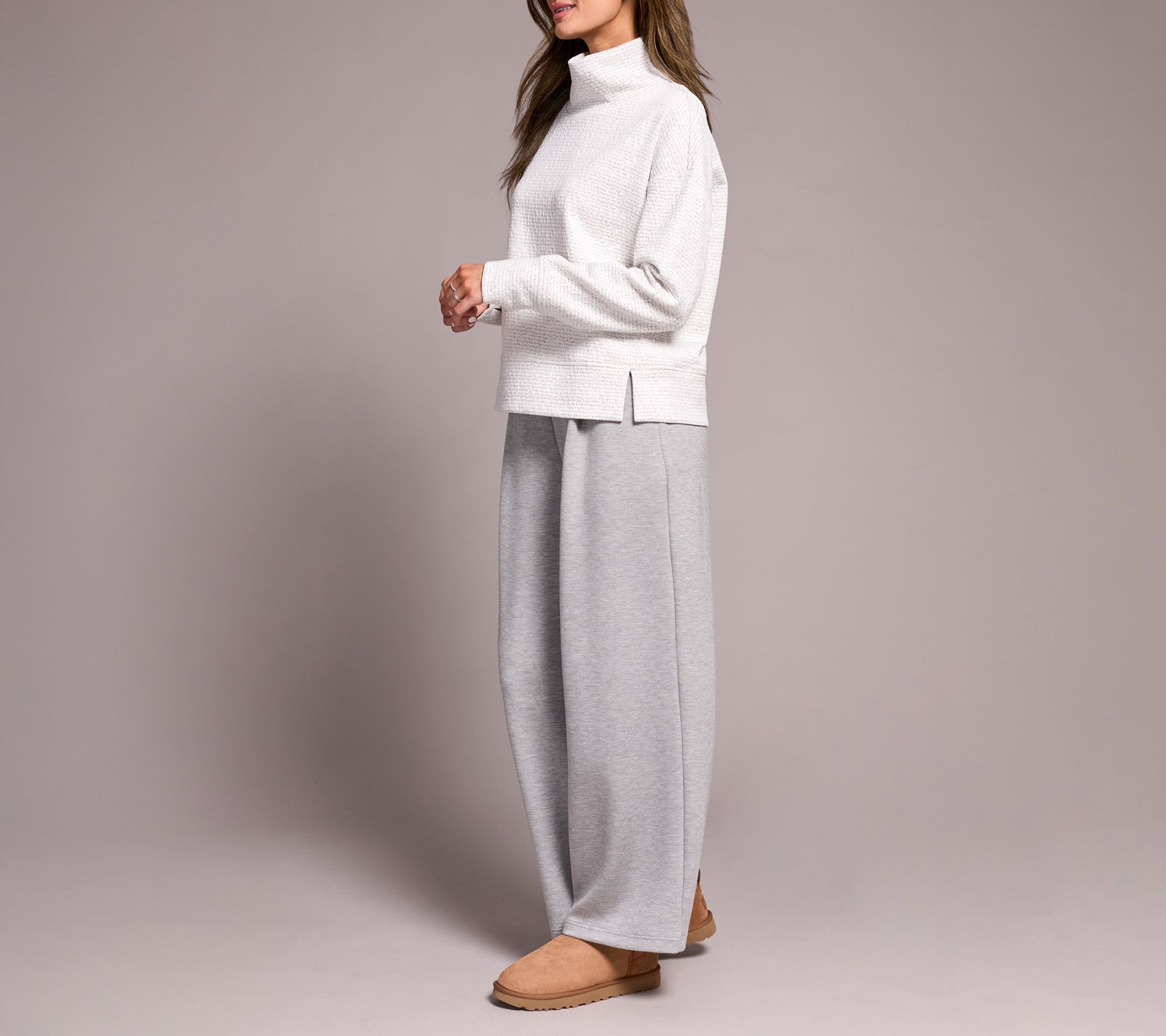 Whether you're heading to brunch with friends or relaxing at home, this knit top brings effortless style to your everyday routine. The drop-shoulder design and funnel neckline add a modern twist, while the puckered texture creates a cozy, inviting feel. From Tribal.