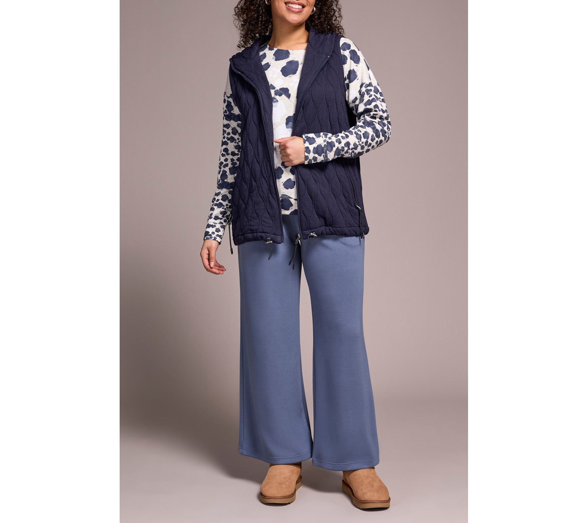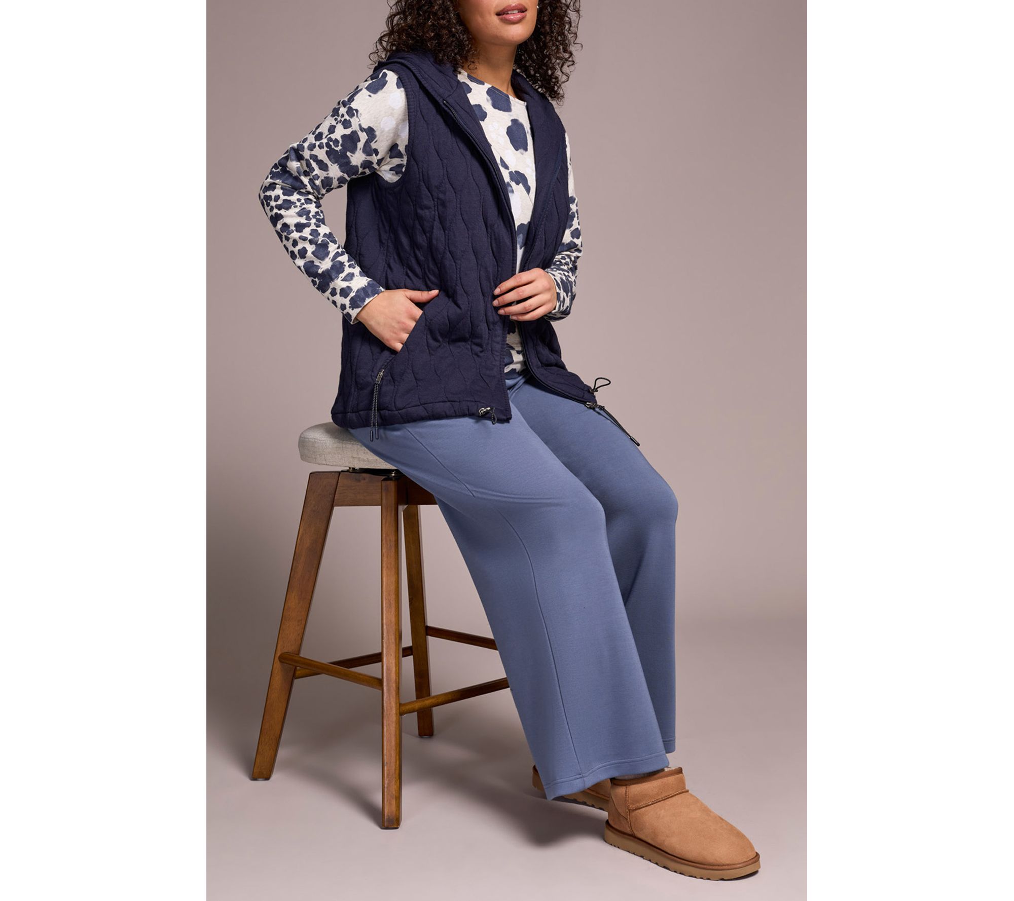 Brisk morning walks or afternoons in the city feel effortless with this women's vest. The soft quilted knit adds a stylish layer of warmth, while the hooded collar and zip front keep you comfortable and shielded from the breeze. Side pockets make it easy to carry your essentials as you move through your day. From Barefoot Dreams.