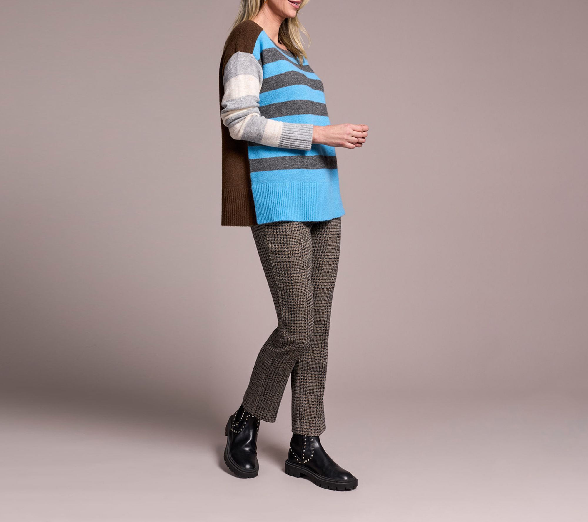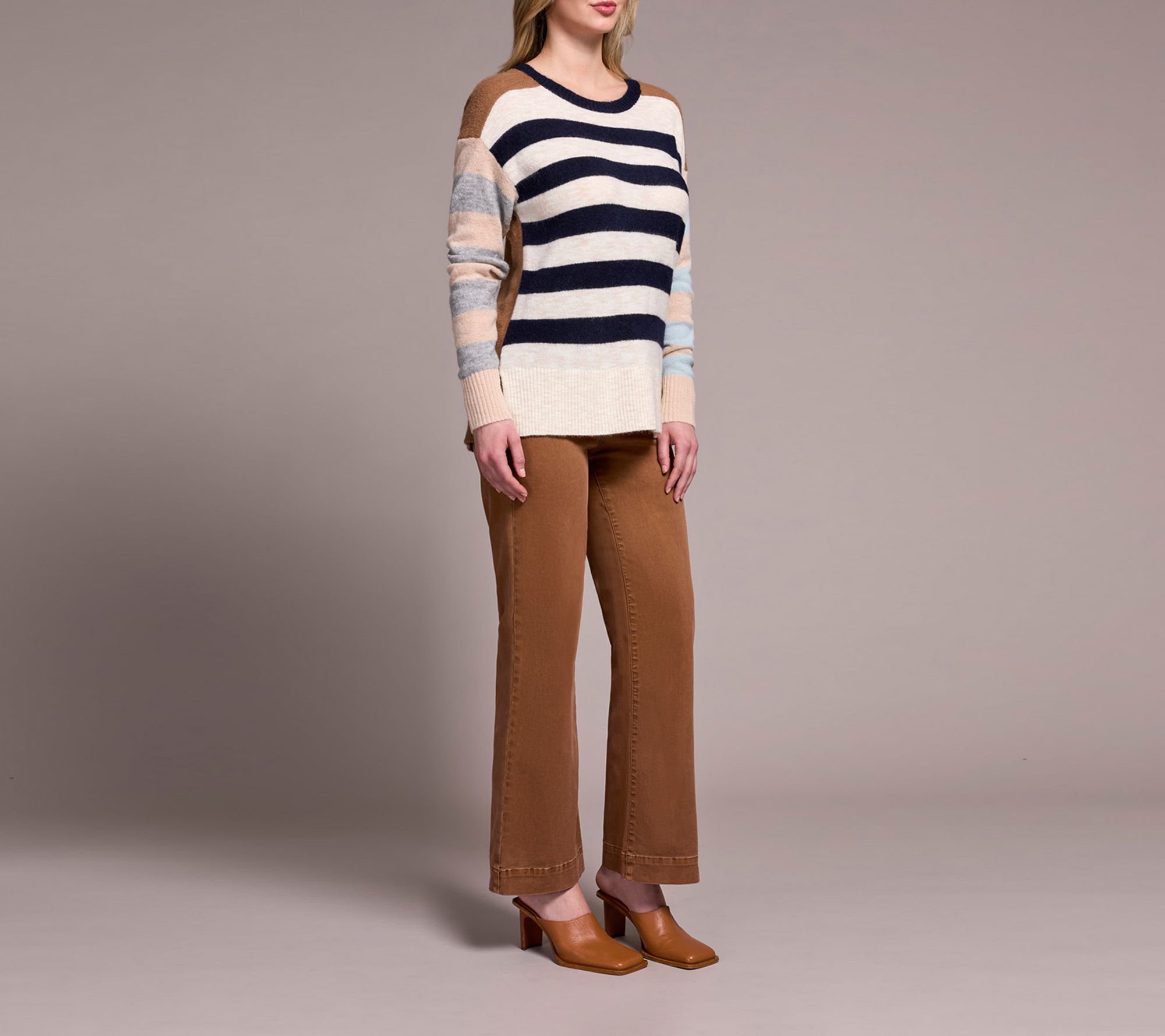 As chilly days arrive, cozy up in this striped boat neck sweater for effortless warmth and comfort. Nautical stripes and a soft, hairy knit bring a touch of elegance to casual outings, from neighborhood strolls to weekend getaways. From Tribal.