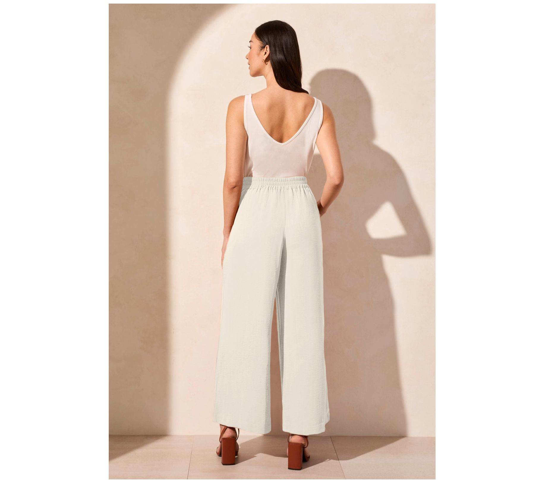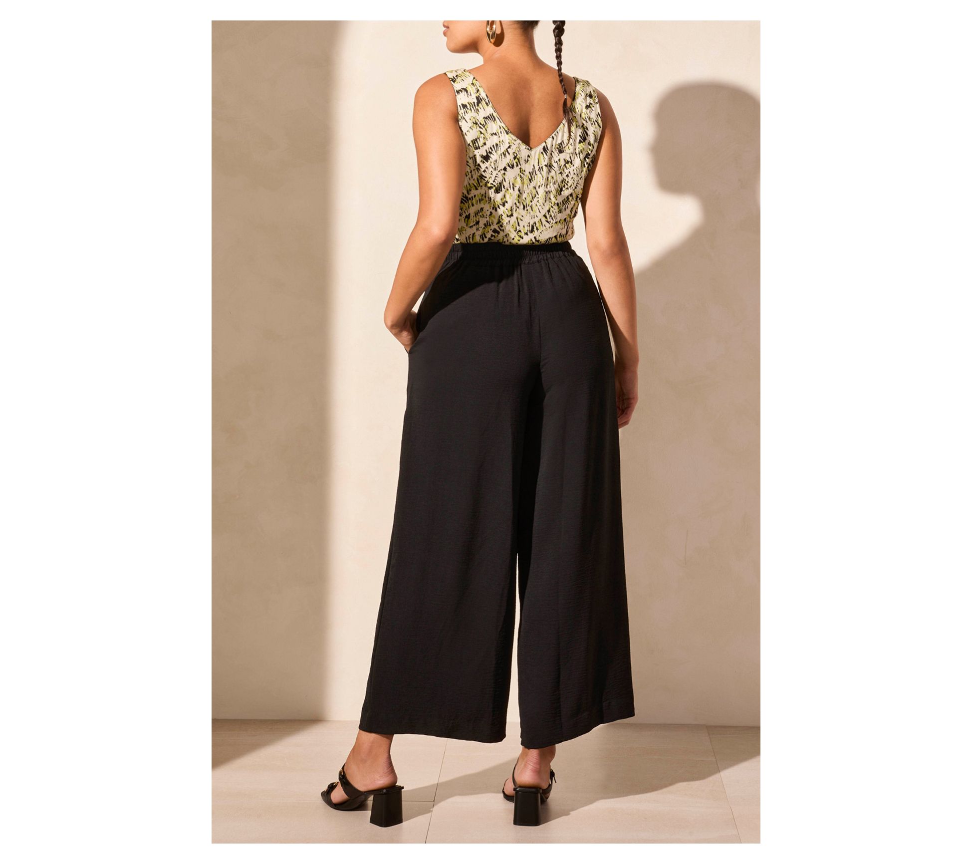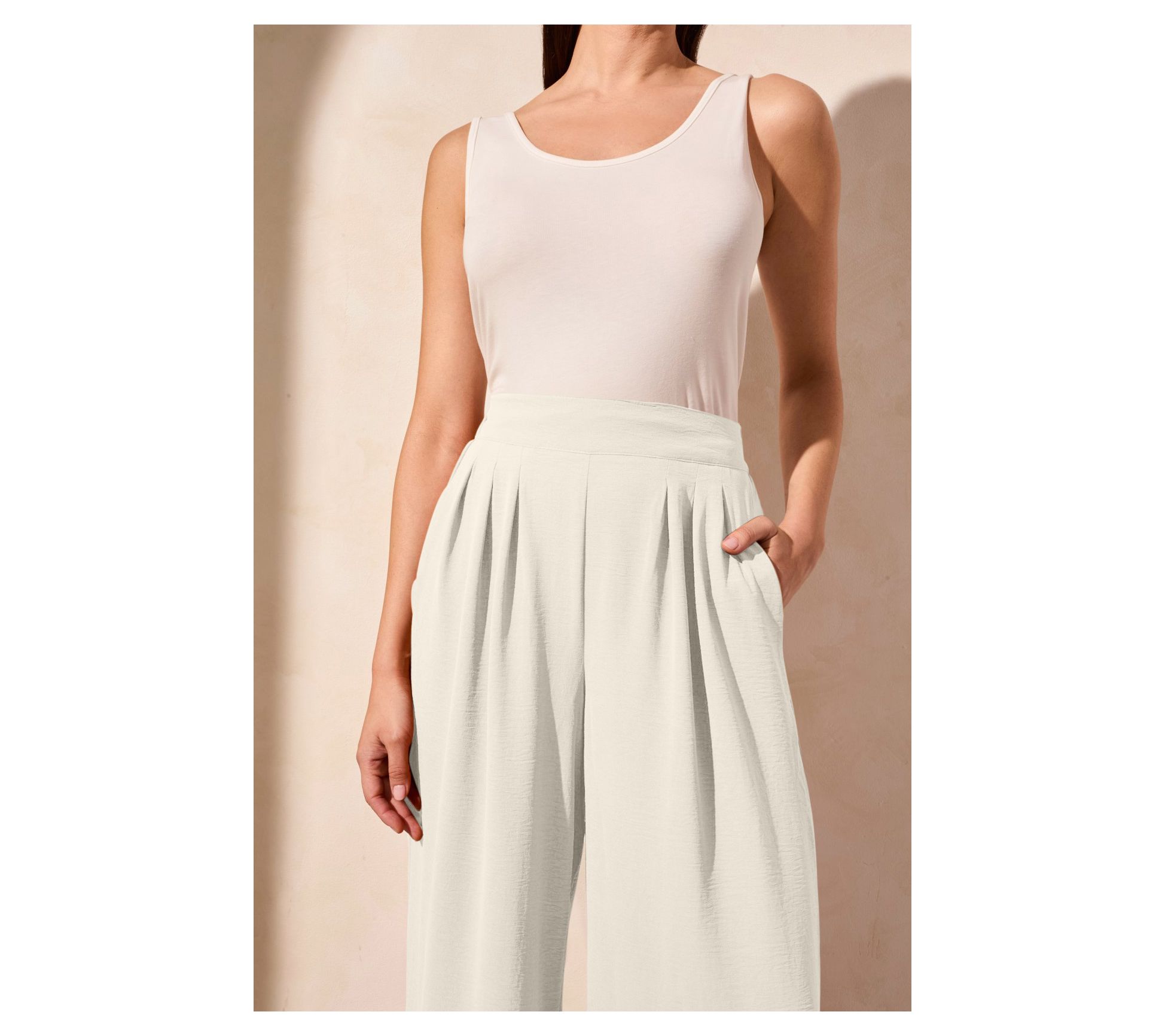 • Features: elastic back waistband, flattering pleats, ankle length