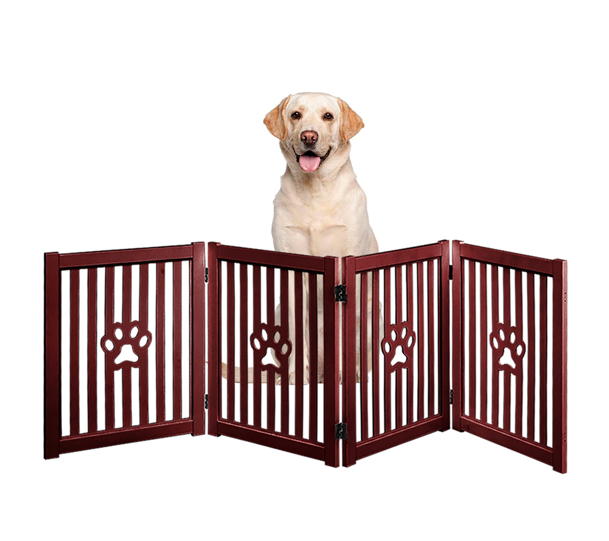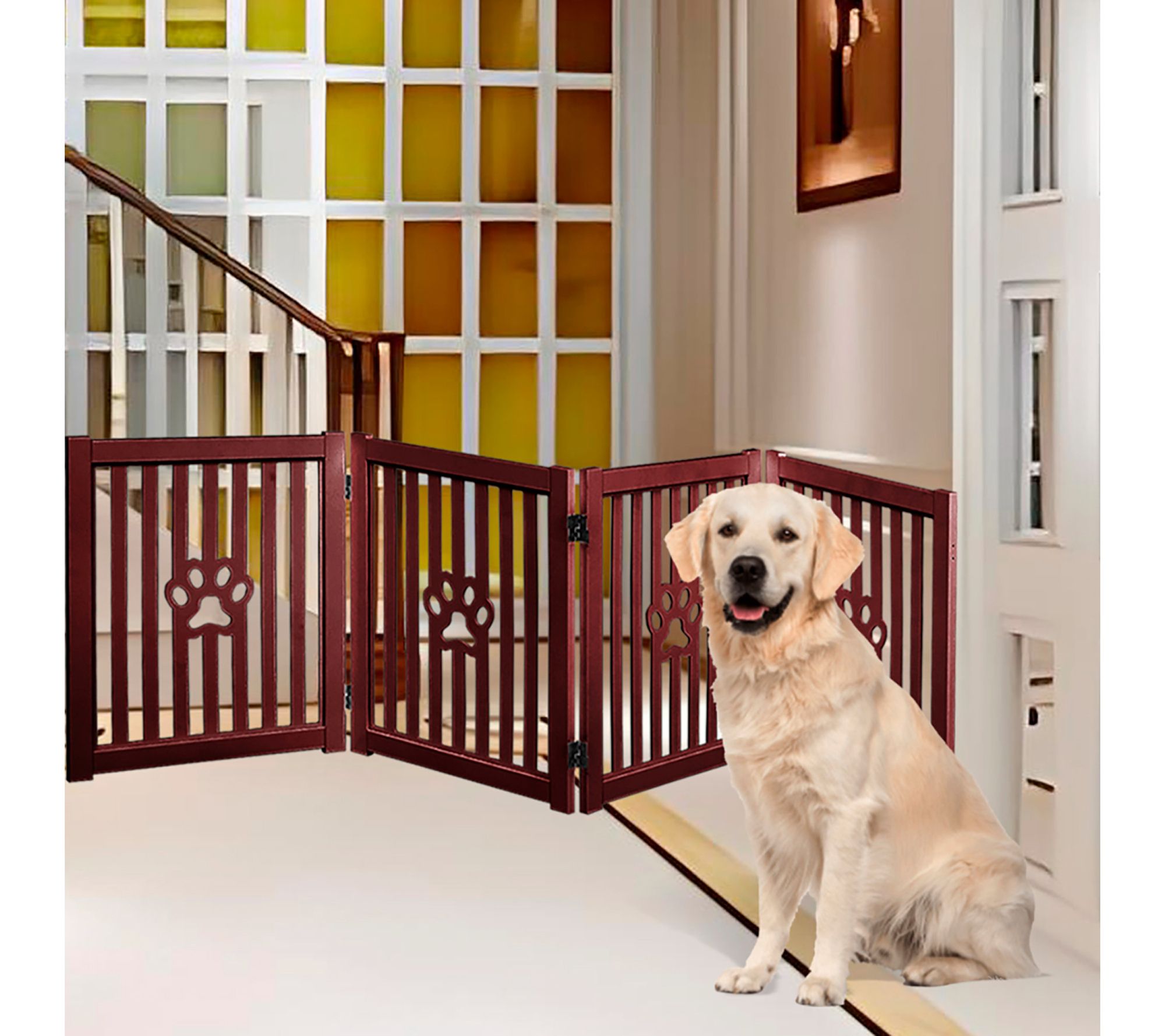 Keep your furry friend secure and your home looking stylish with the Trimate panel foldable wooden pet gate. This innovatively designed pet barrier features 360-degree rotated hinges for ultimate flexibility and nonslip rubber pads to protect your floors. From TRIMATE.