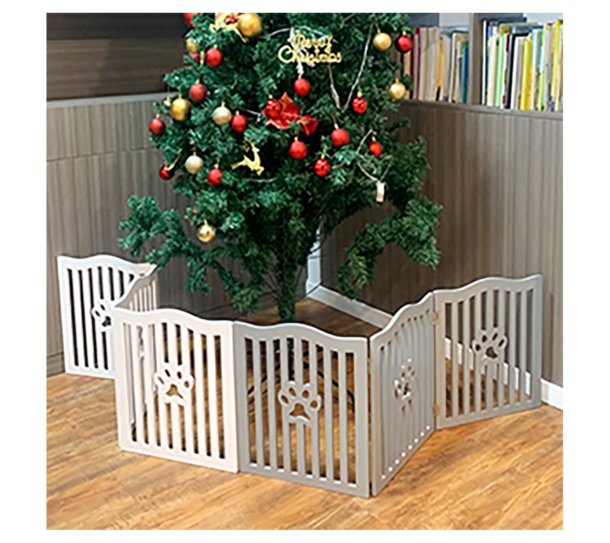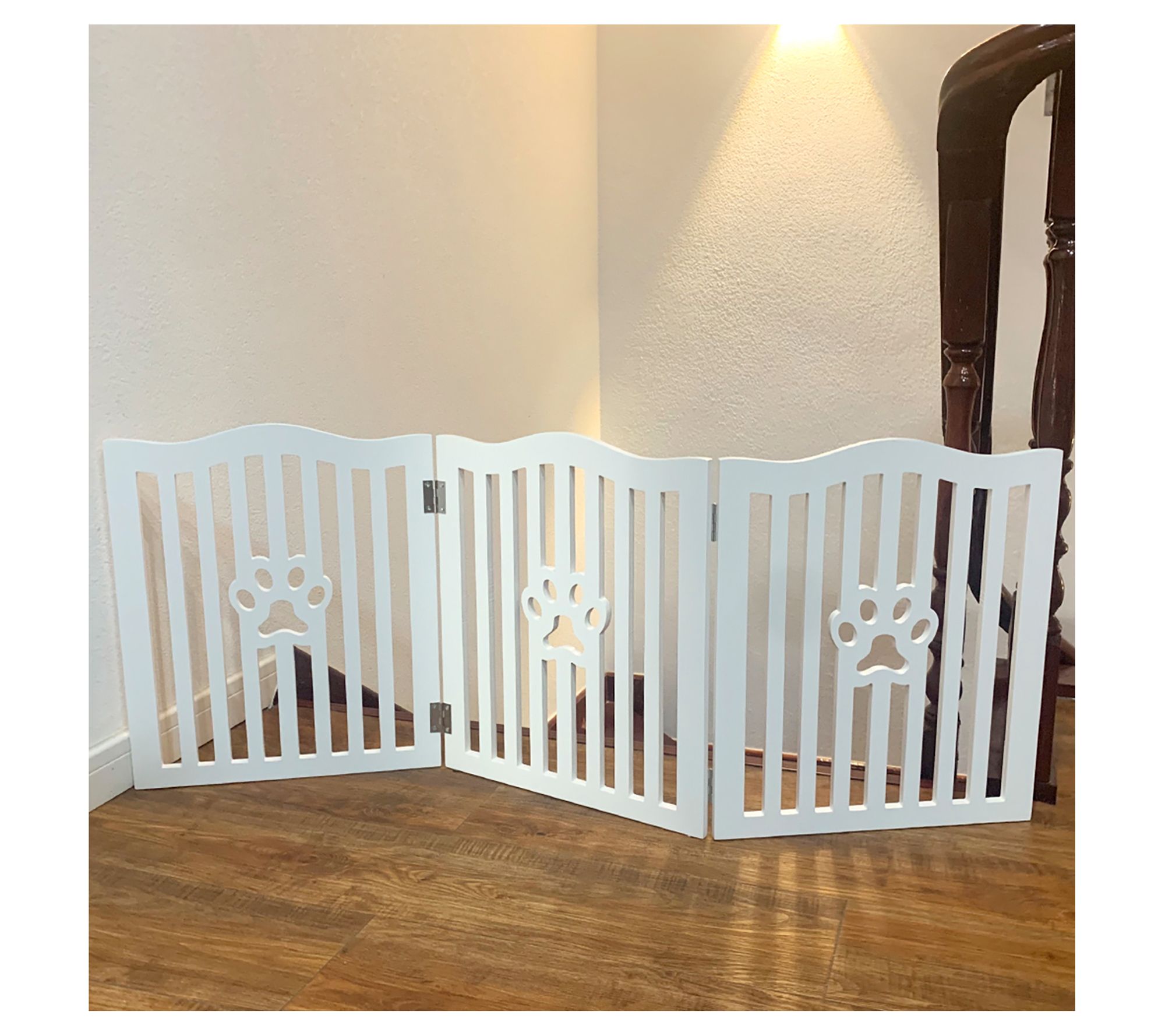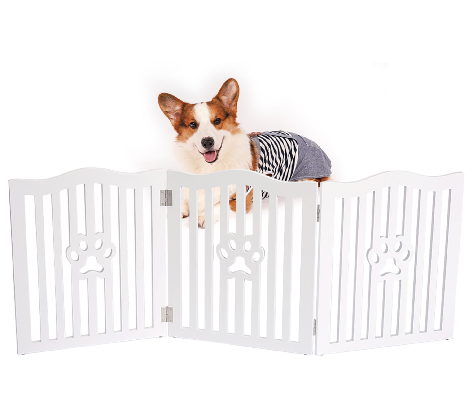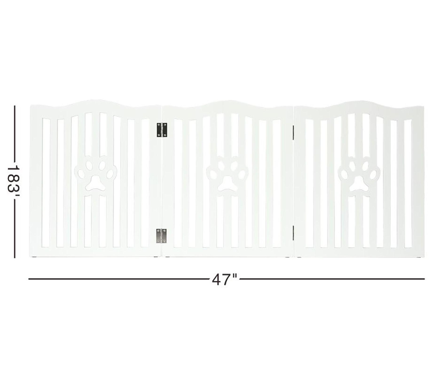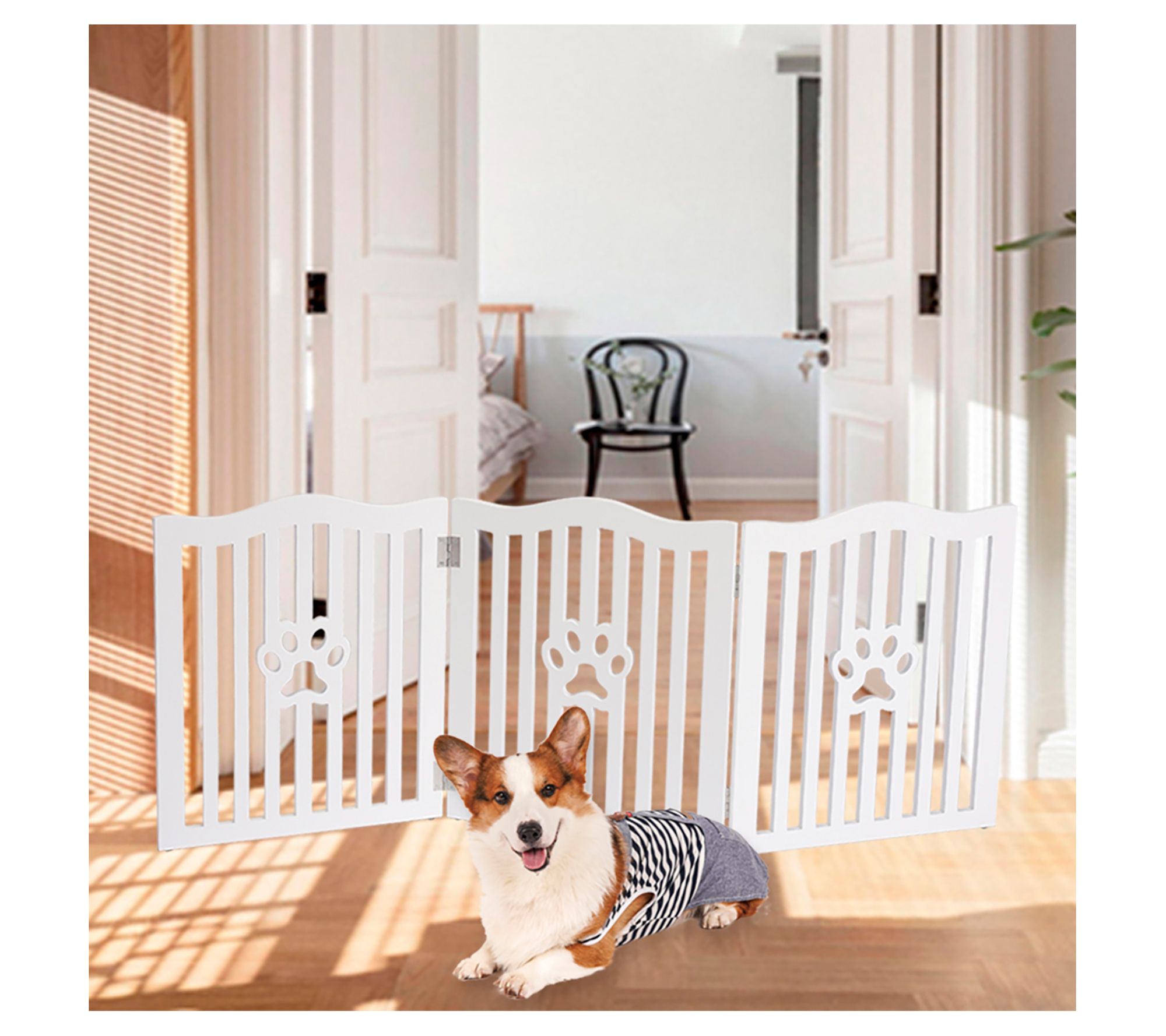 Keep your pets safely contained and your home stylish with this wooden pet gate. This gate unfolds easily into a zigzag shape for immediate use without installation, making it ideal for securing various areas like staircases, doorways, and patios. Plus, its modern design blends seamlessly with your home decor, providing a perfect mix of functionality and style. From Trimate.
