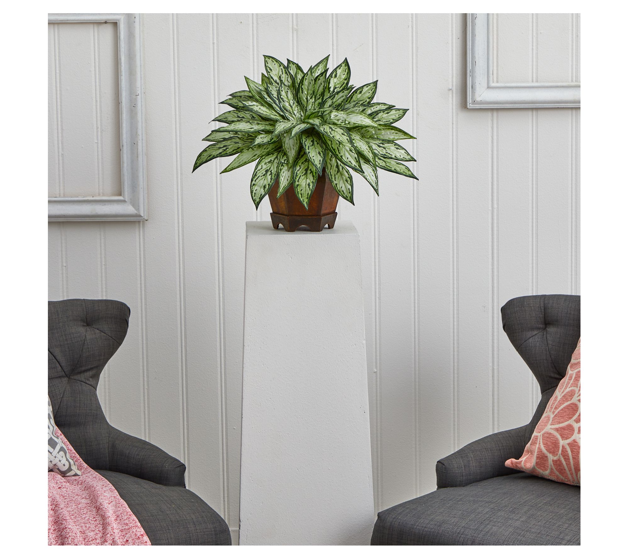 Perfectly regal, this Triple Silver Queen artificial plant looks the part! With a thick burst of multi-tonal green leaves and placed in a hexagon planter, this beautiful plant is set to brighten up any corner. From Nearly Natural.