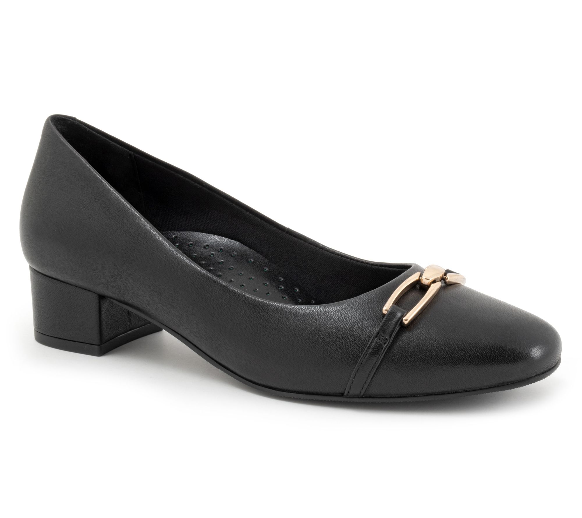Step lively when you slip on these sturdy cushioned pumps that give your look a boost of style and height. From Trotters.