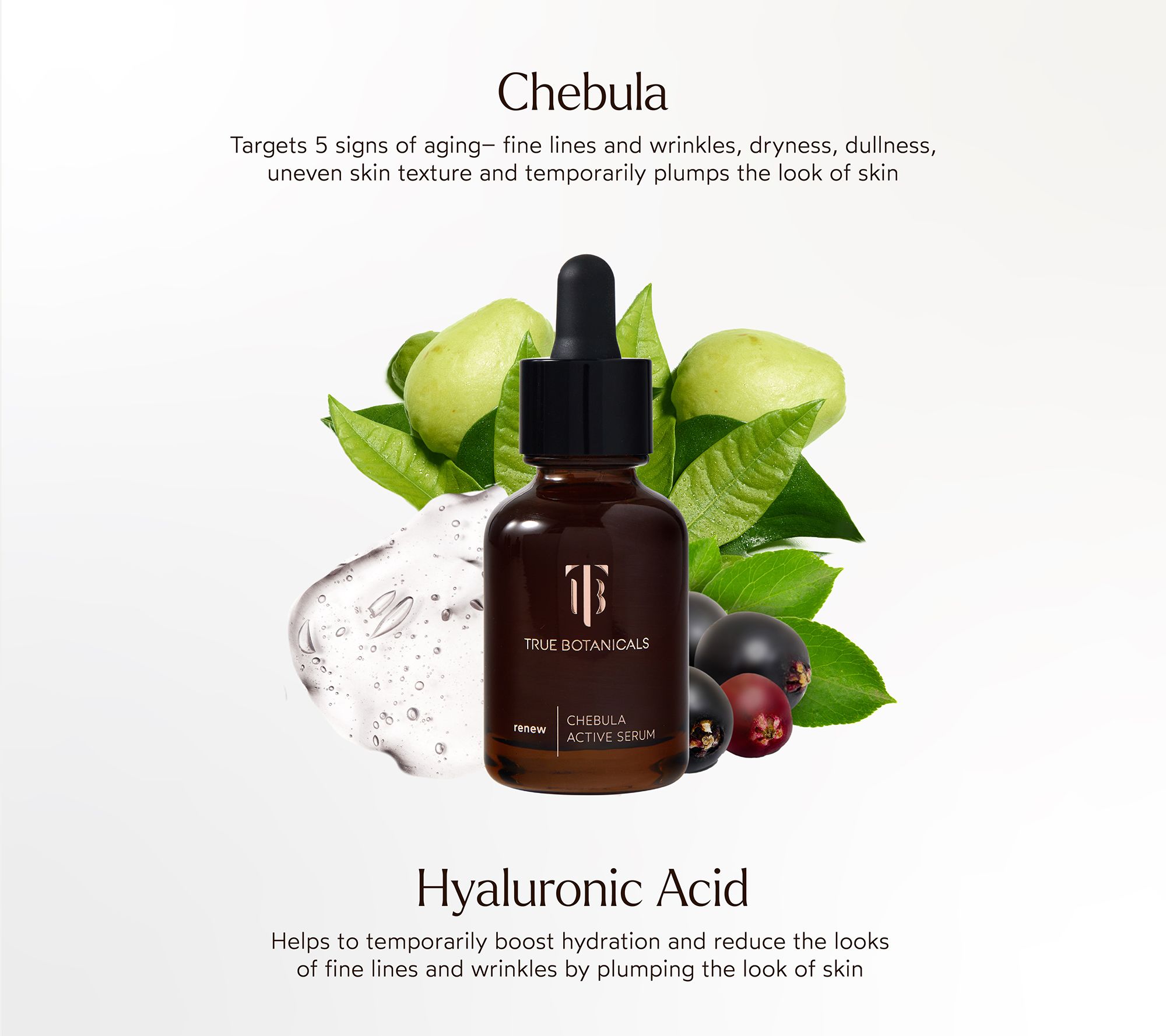 Chebula Anti-Aging Serum is a rich, hydrating serum that helps address five signs of aging and optimize the skin's own natural collagen levels. Formulated with the antioxidant chebula, this serum helps moisturize the skin, reduce the appearance of fine lines and wrinkles, and may help fight against free radicals.