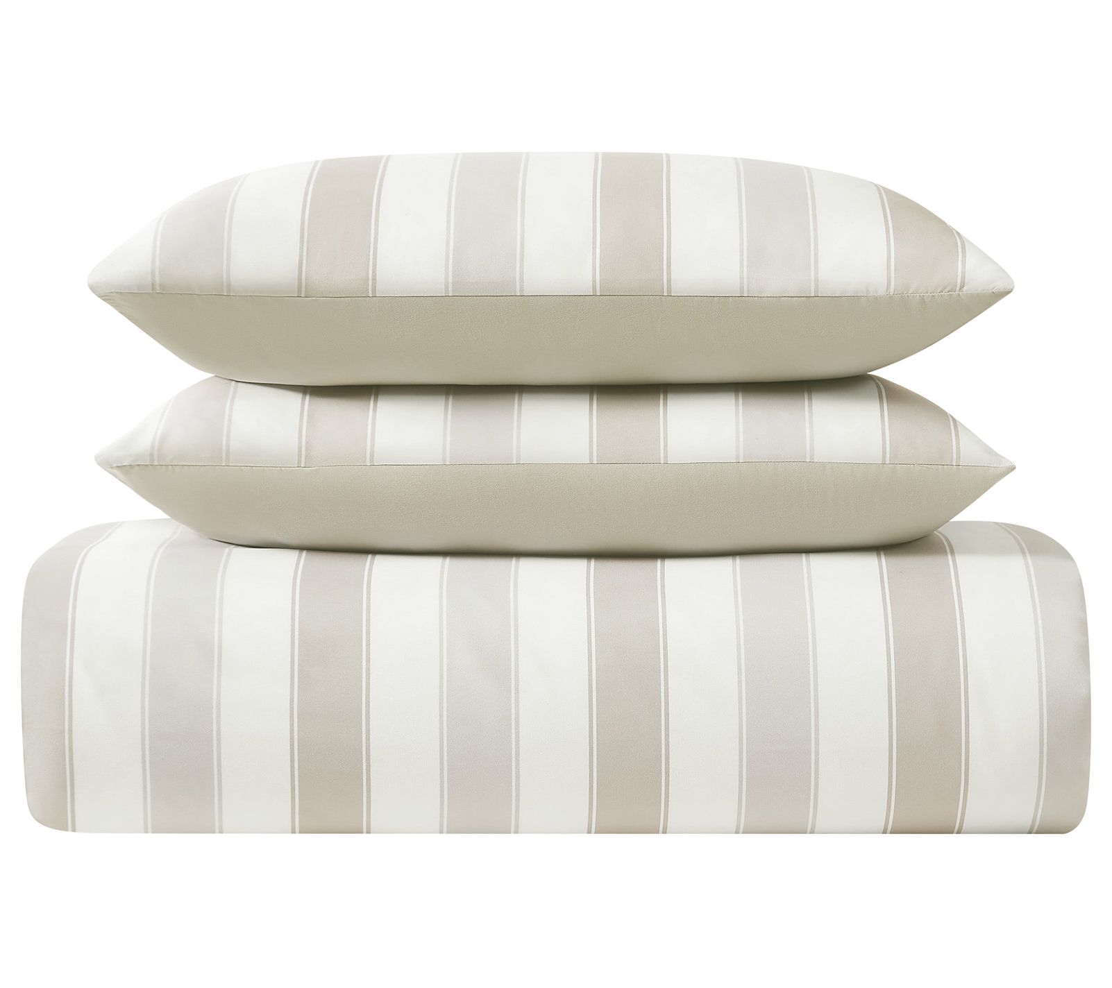Transform your sleeping space into a serene retreat with this comforter set featuring large cabana stripes in alternating shades for a casual yet vibrant look. From Truly Soft.