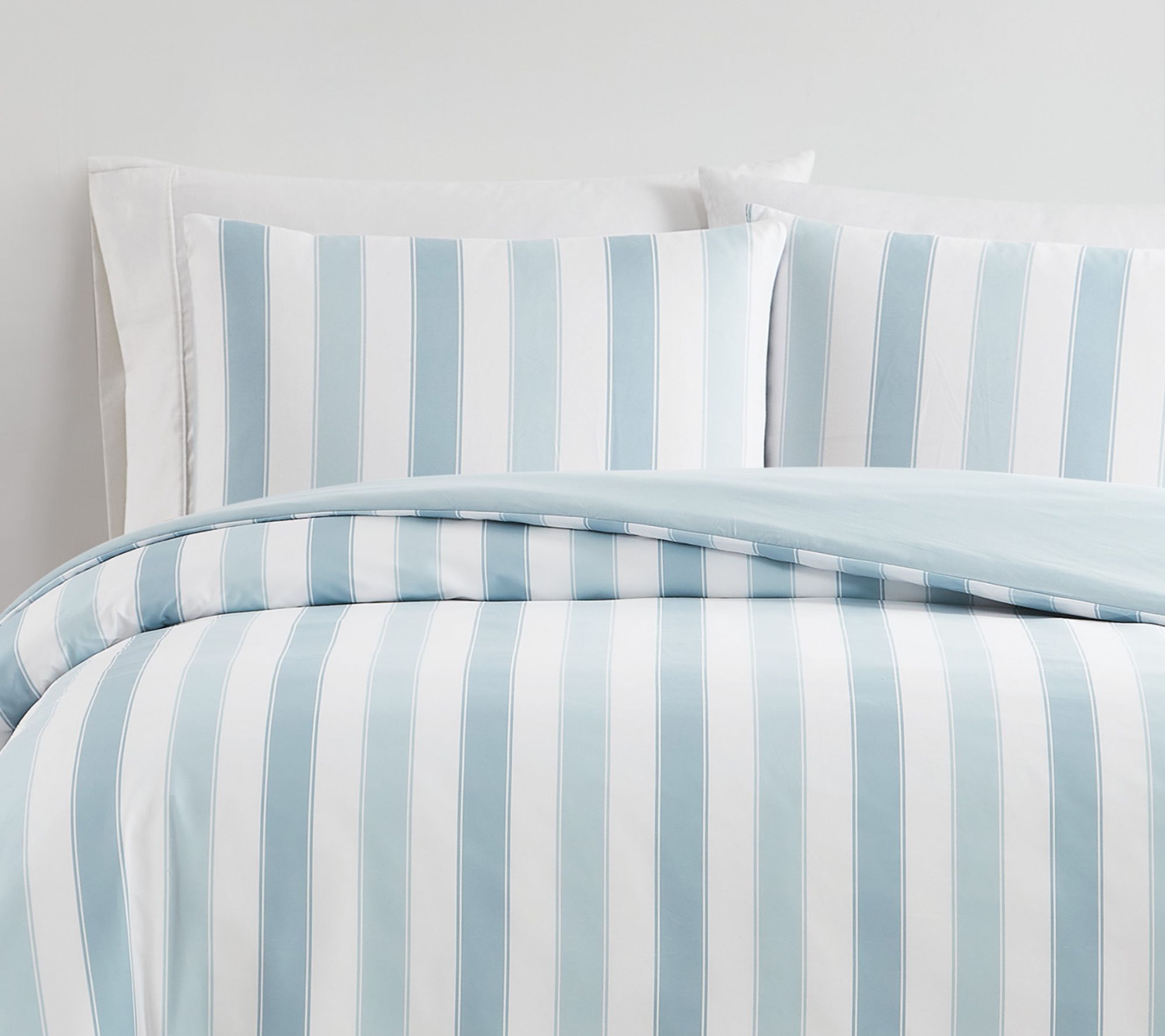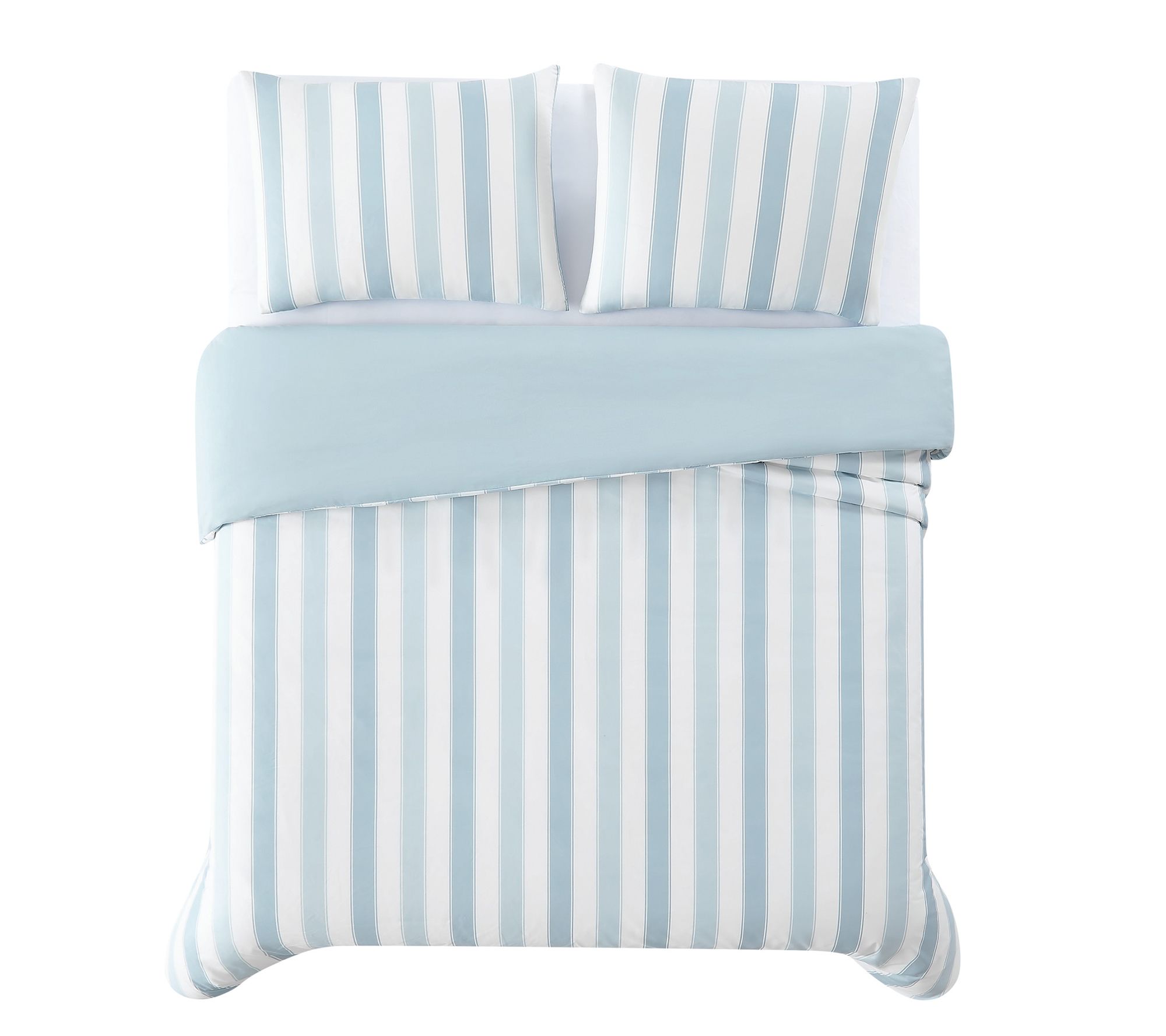 Transform your sleep space with this duvet cover set featuring vibrant cabana stripes that add a touch of casual elegance and a breezy feel to any room. It reverses to a coordinating solid color for versatile styling options. From Truly Soft.