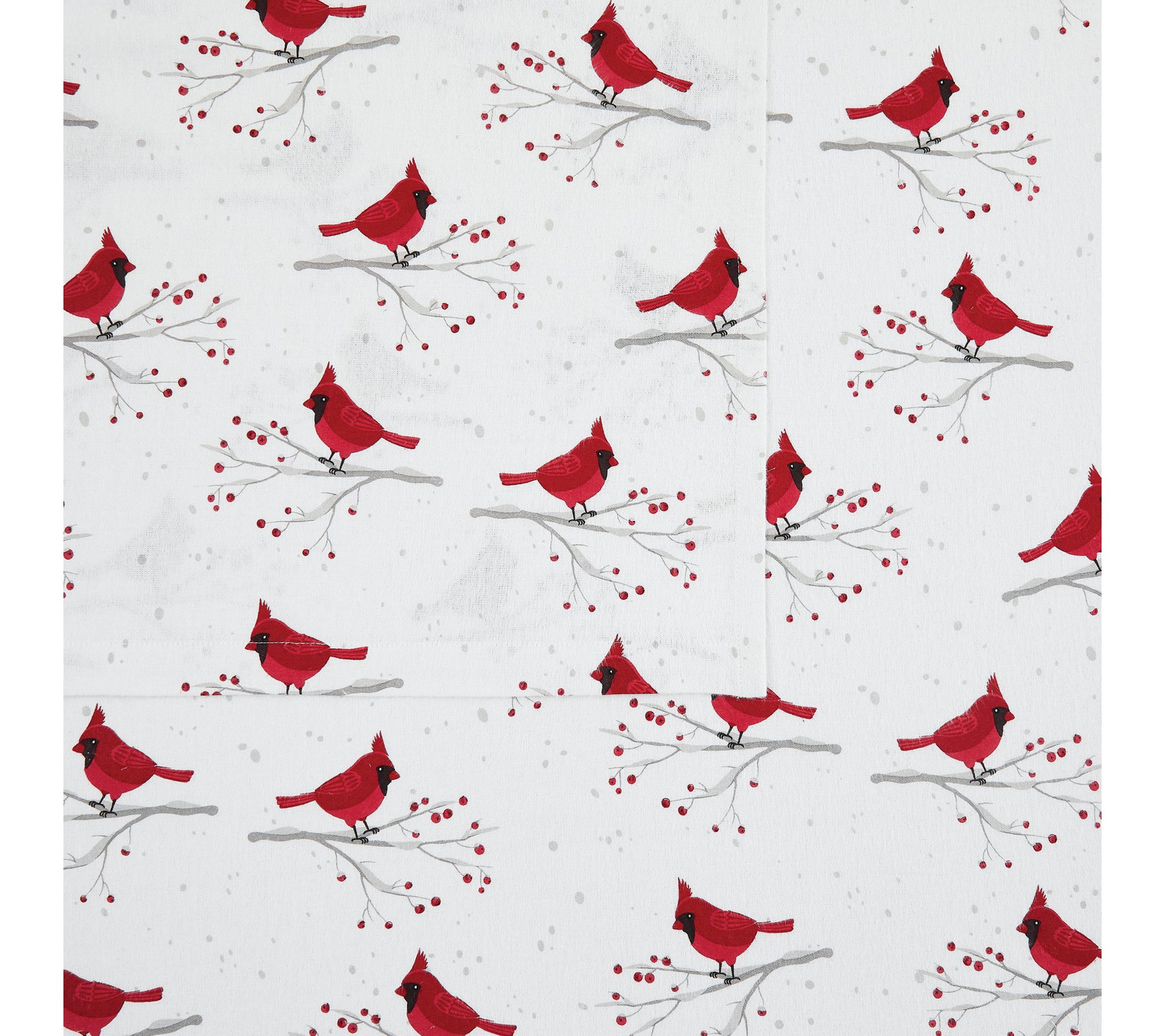 Brighten up your bedding with the cozy Truly Soft Cardinals Twin flannel sheet set. This design features vivid red cardinals, symbolizing energy and good health, perfect for adding a warm touch to your space. From Truly Soft.