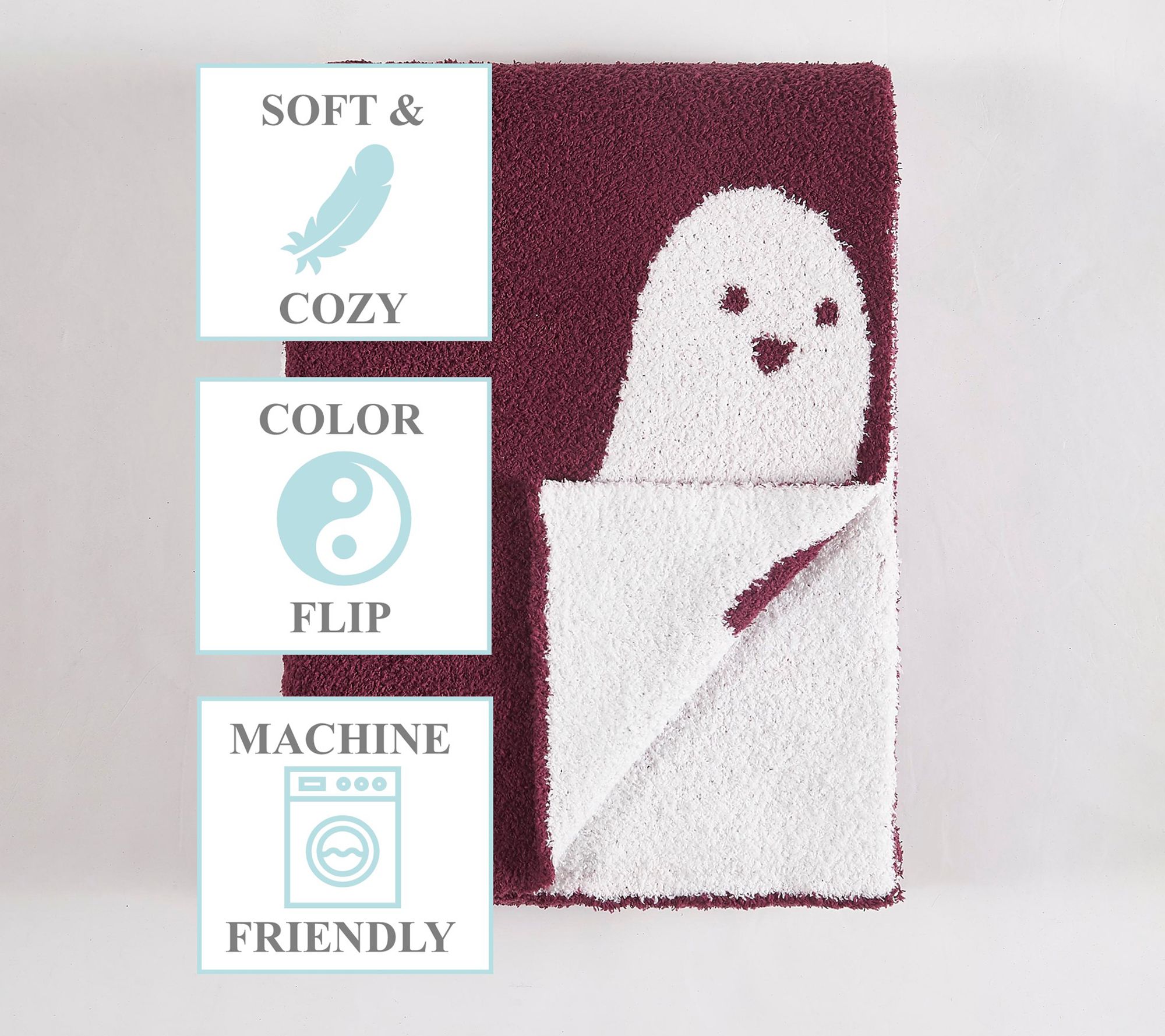 Celebrate the spirit of fall and Halloween with this cozy ghost reversible throw, designed to add a playful touch to your seasonal decor. The ghost pattern brings whimsical charm to your space, while the plush, feather yarn creates a soft, comforting cocoon whether you're reading, watching a movie, or relaxing on the sofa. From Truly Soft.