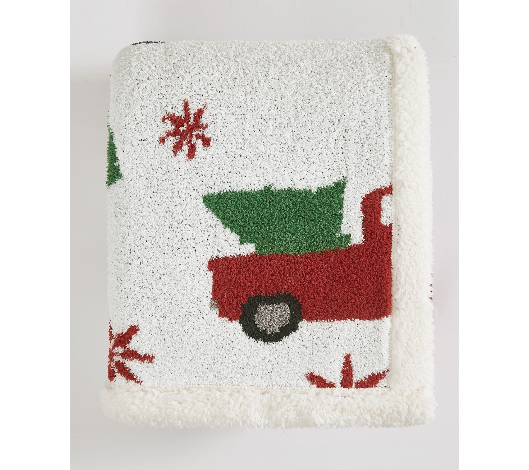 Welcome a cozy touch of holiday cheer into your home with the Truly Soft Cozy Tree and Truck Throw. The festive design brings scenes of red trucks and evergreen trees to life, setting the mood for relaxing winter evenings. With supremely soft jacquard chenille on one side and plush faux fleece on the other, this blanket invites you to snuggle up or share warmth with family and friends. From Truly Soft.