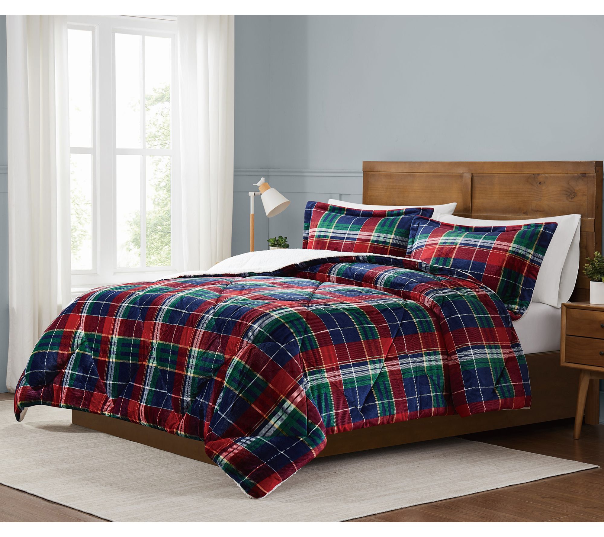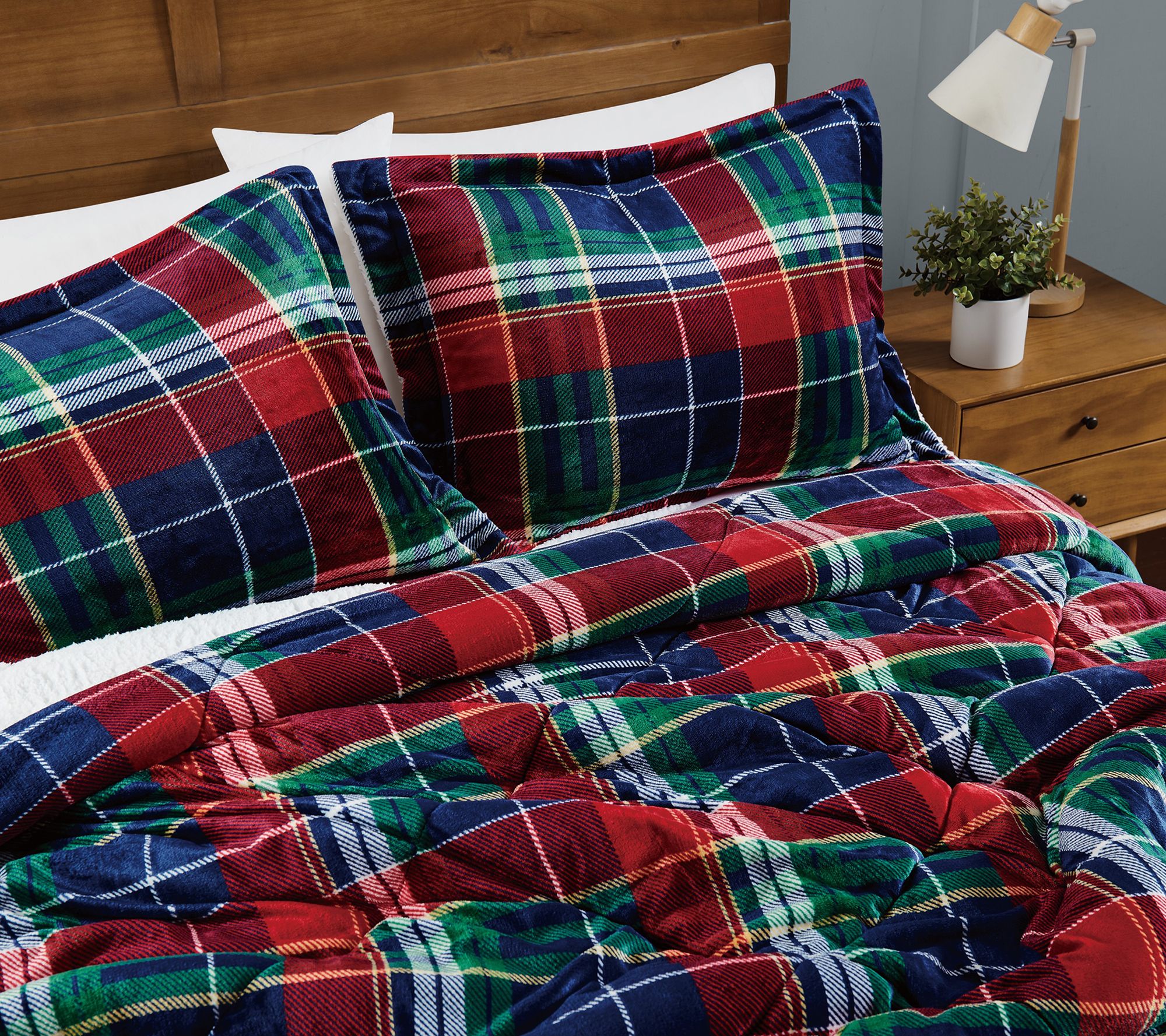 Classic plaid brings a welcoming touch to your bedroom, while the velvet face and plush sherpa reverse invite you to unwind in cozy comfort. This comforter set offers gentle warmth and a smooth, snuggle-worthy feel, making it an inviting choice for relaxing nights and leisurely mornings. Layer it in a guest room or main suite for a look that feels both timeless and relaxed. From Truly Soft.
