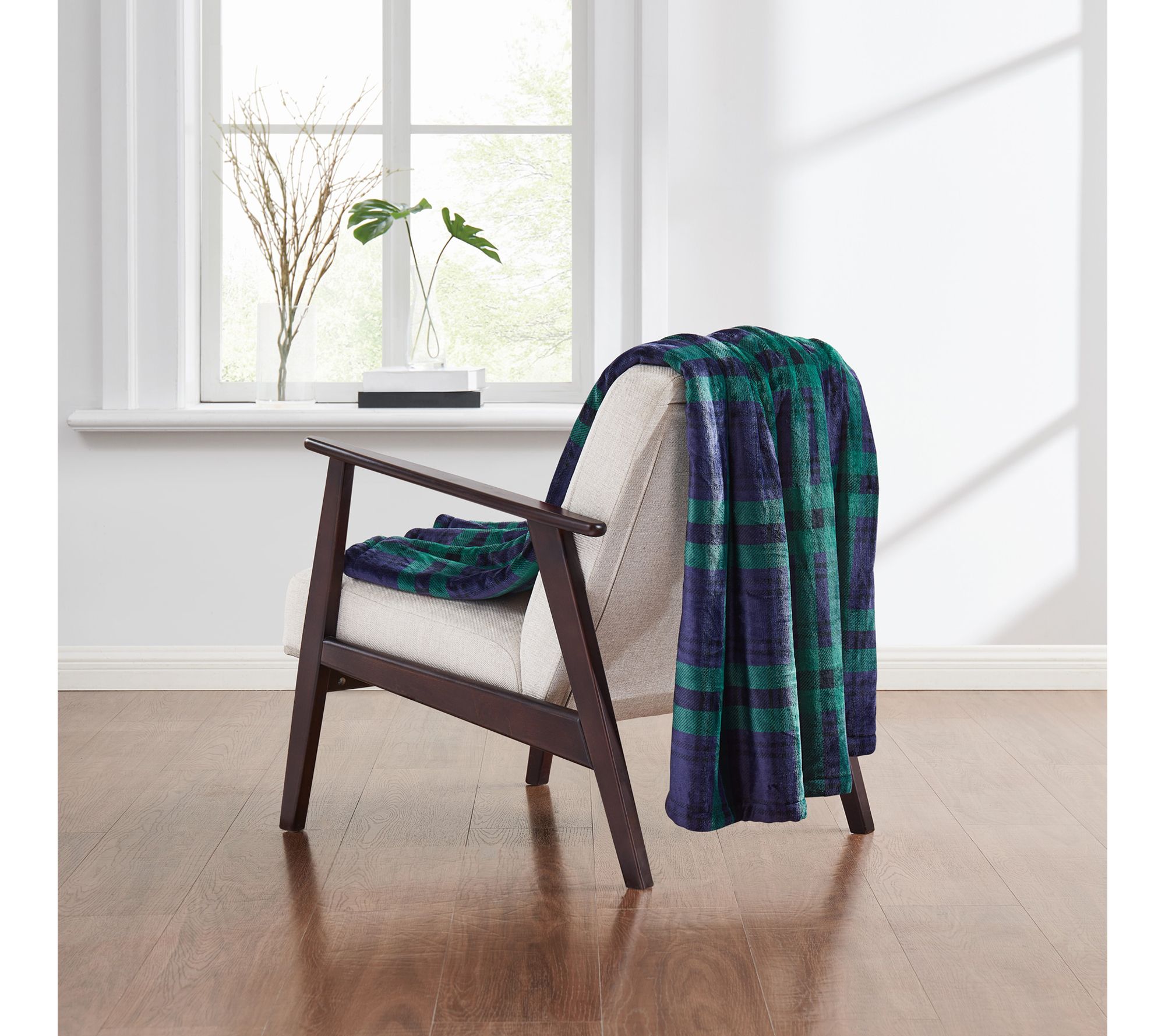 Movie nights and chilly mornings get a cozy upgrade with this plaid throw blanket, featuring a luxuriously soft polyester velvet face and plush sherpa reverse for extra warmth. The classic tartan pattern blends seamlessly with rustic or modern decor, while the throw's generous size makes it just right for relaxing on the sofa or adding an inviting touch to your bedroom. From Truly Soft.