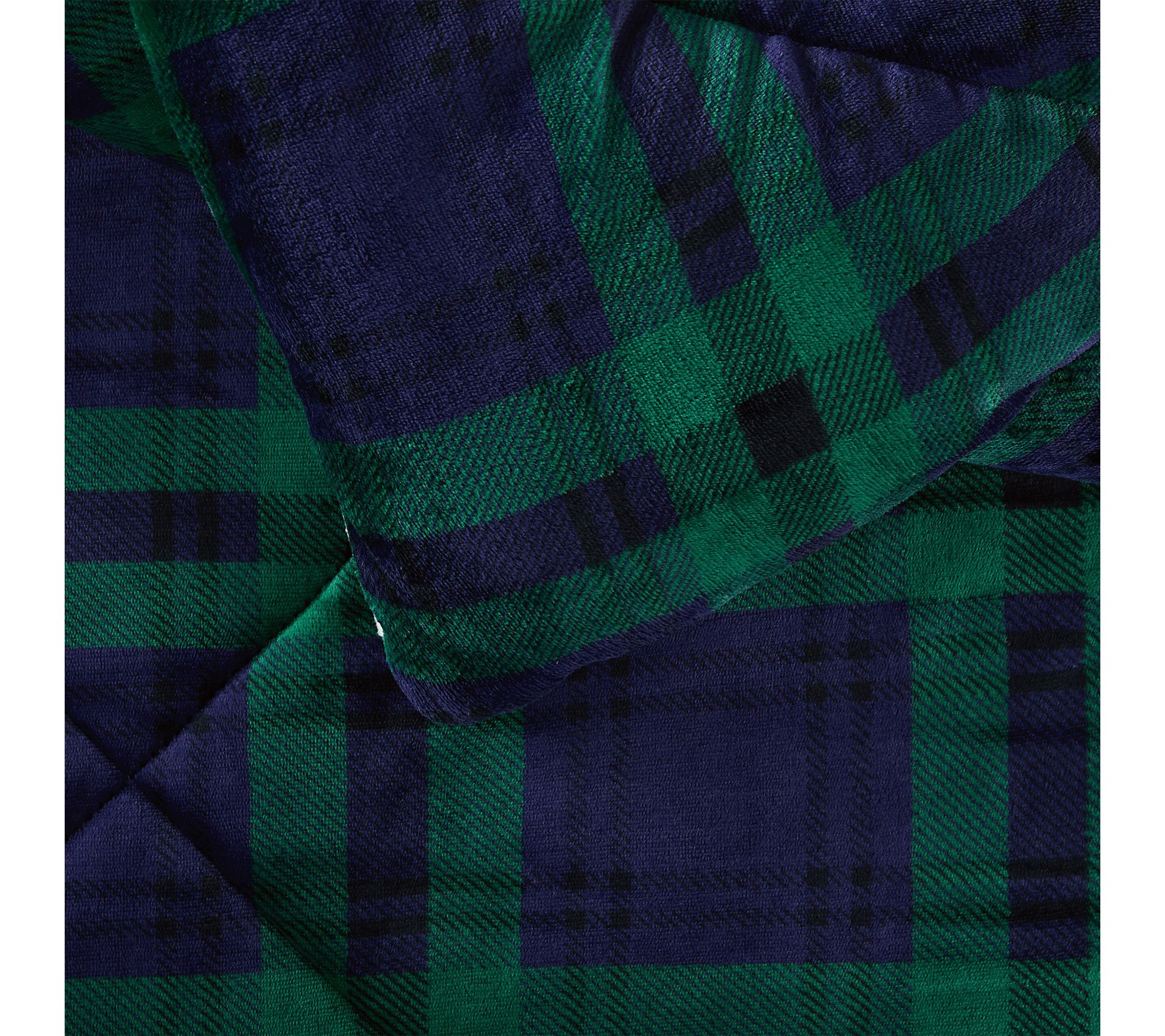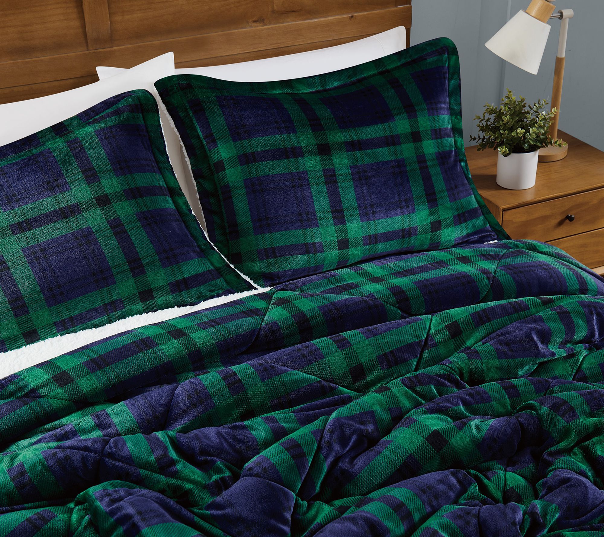 • Tartan plaid design; velvet reverses to sherpa