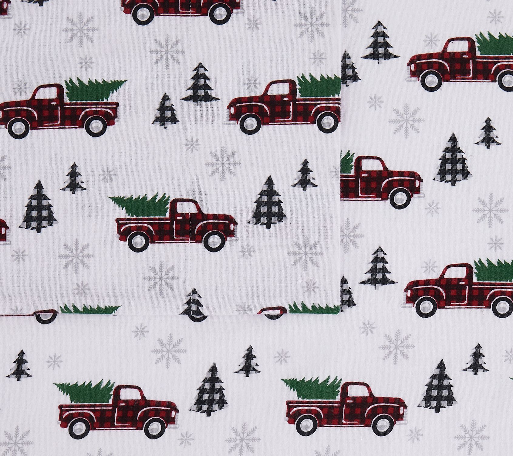 Truly Soft Holiday Truck King Flannel Sheet Set