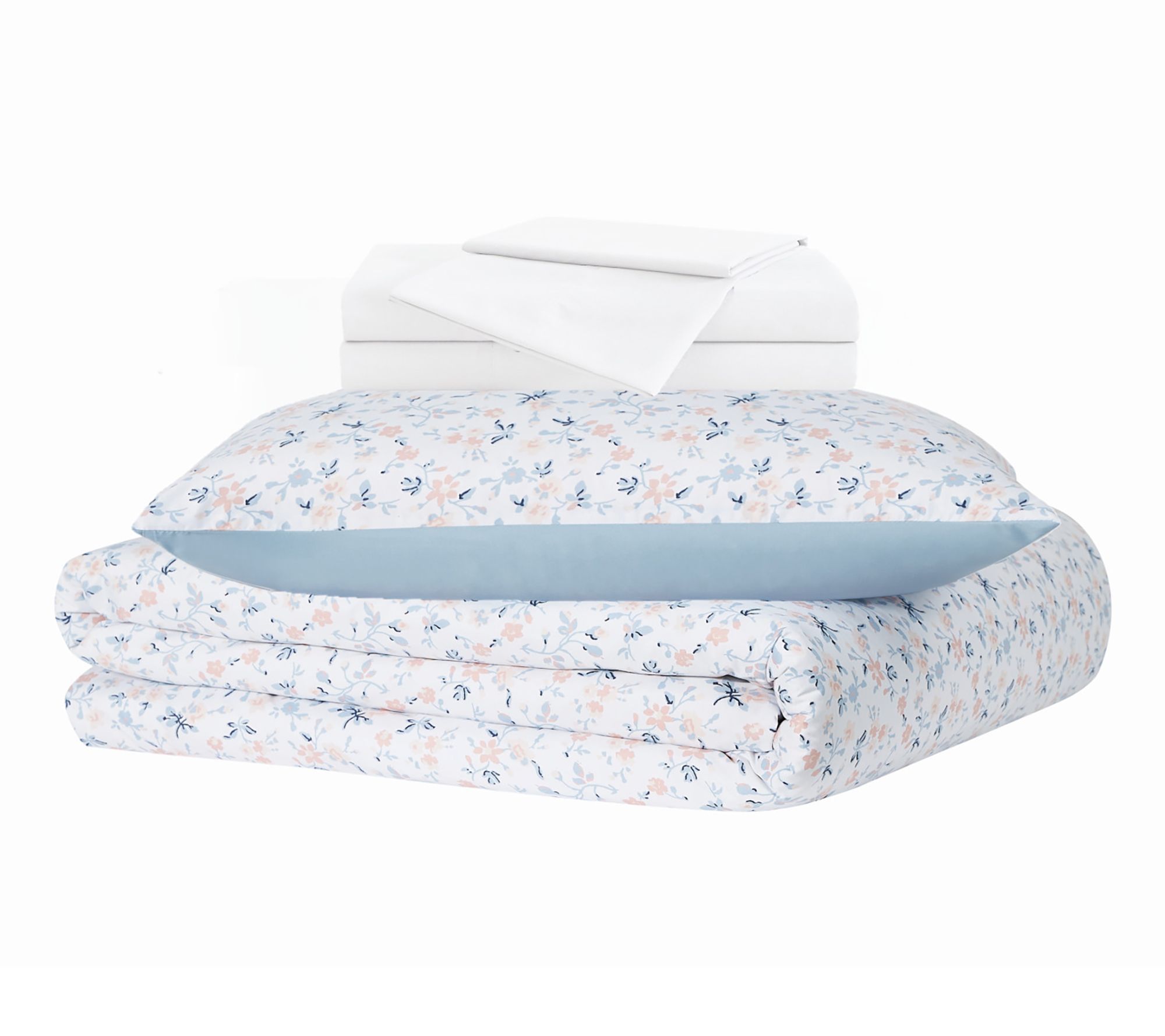 • Includes one comforter, one pillow sham, one fitted sheet, one flat sheet, and one pillowcase