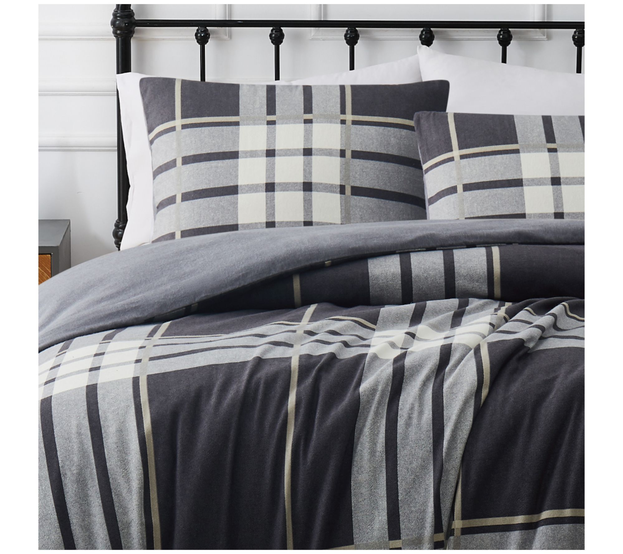 Up the cozy factor on those cooler nights with this flannel twin XL Milo duvet cover set, featuring a charming plaid design that looks as comfy as it feels. From Truly Soft.